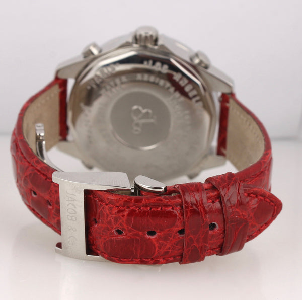 | Band | Original Jacob & Co. Red Leather Strap with a Stainless Steel Folding Deployment Clasp |