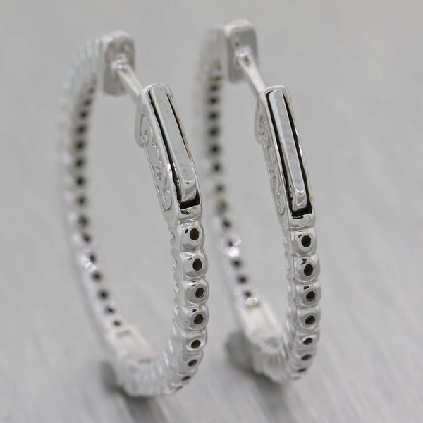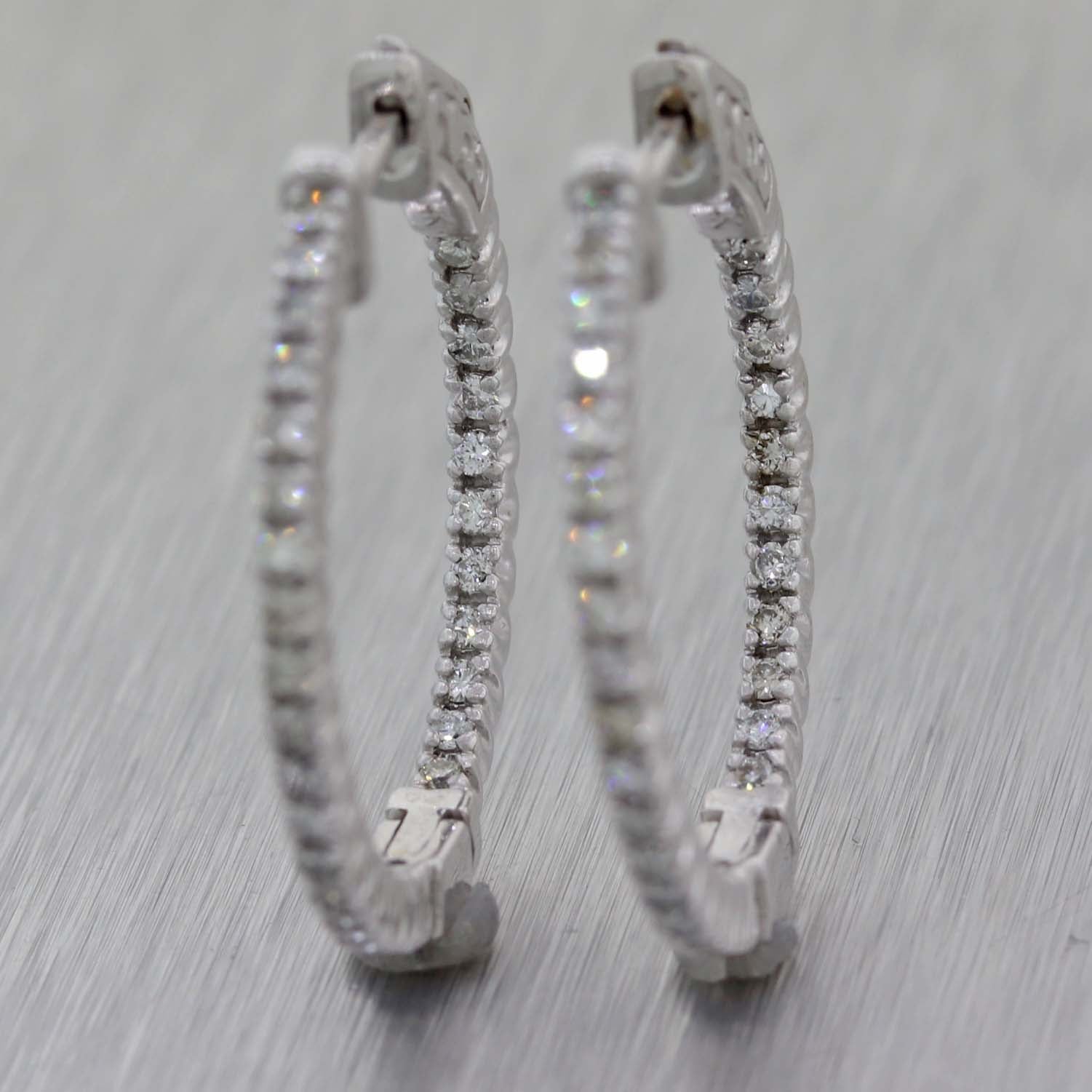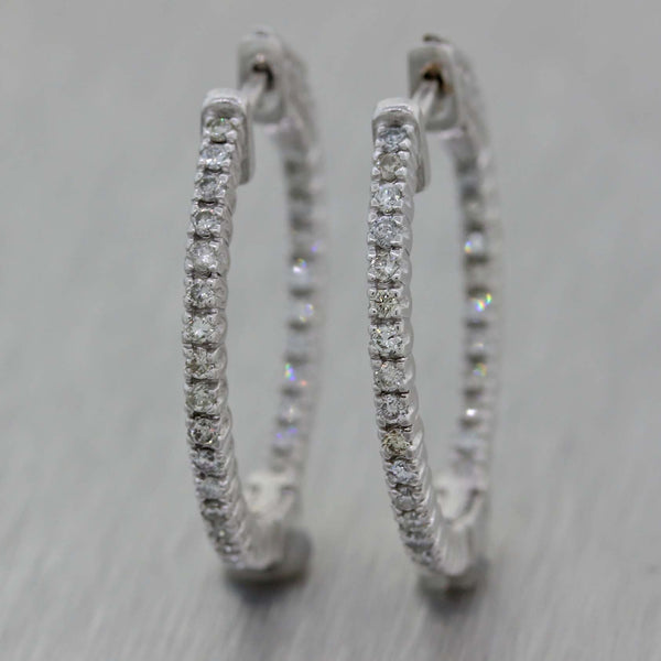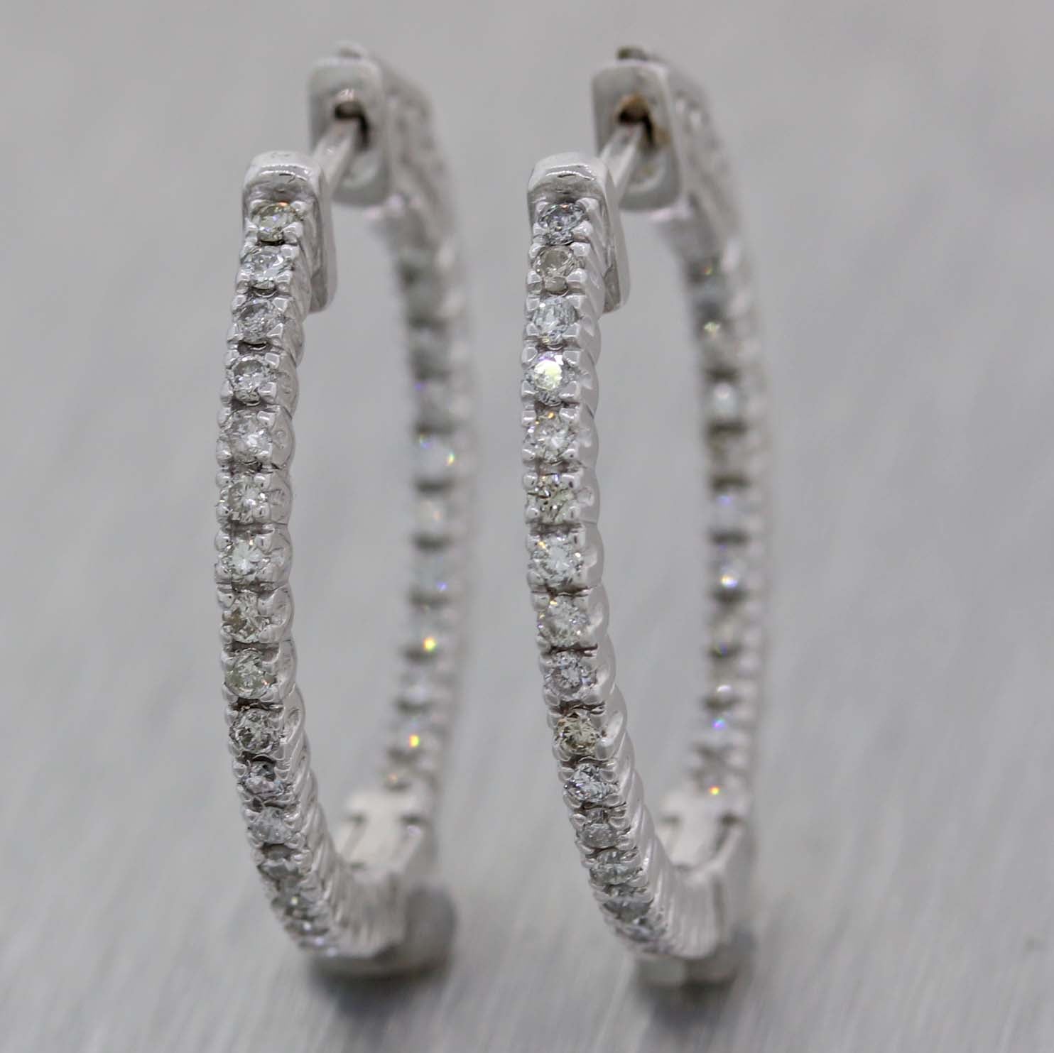 For your consideration, a pair of Ladies 14K White Gold .71ctw Diamond 24mm In-Out Hoop Earrings. They will come professionally packaged in a Collectors Coins & Jewelry gift presentation box.