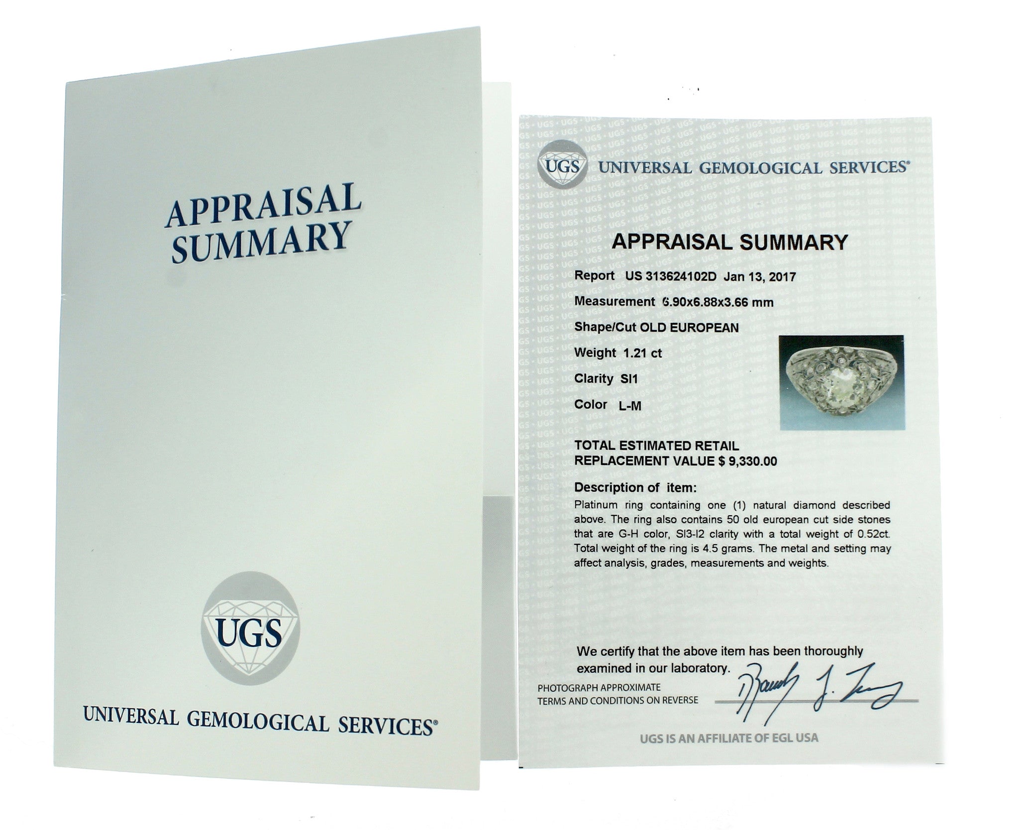Yes, this item will include the EGL USA 'Ten Star Report', the UGS 'Appraisal Summary' pictured and an additional Collectors Coins & Jewelry certificate of appraisal and authenticity as per buyer request. |