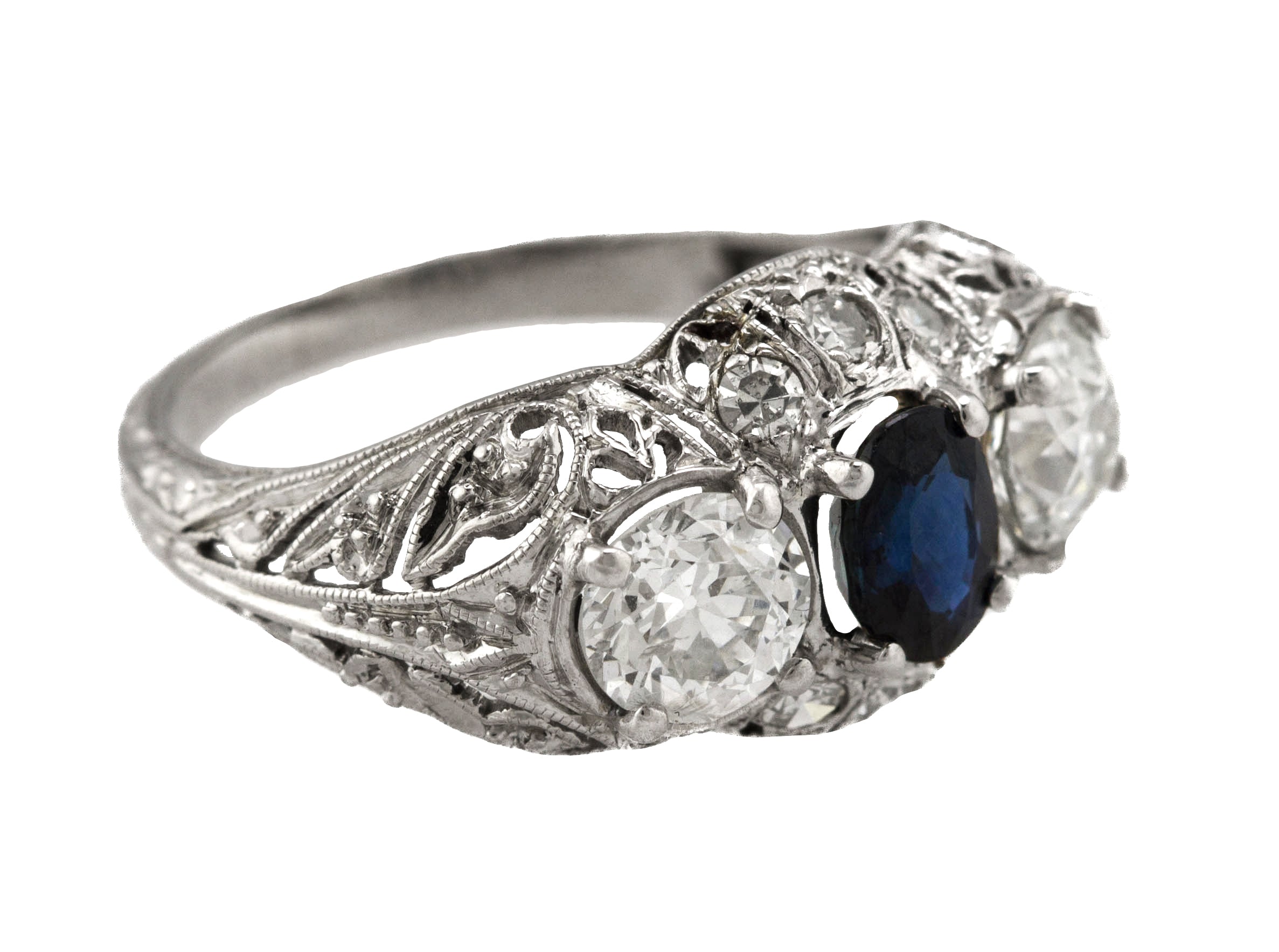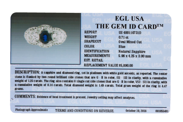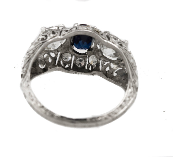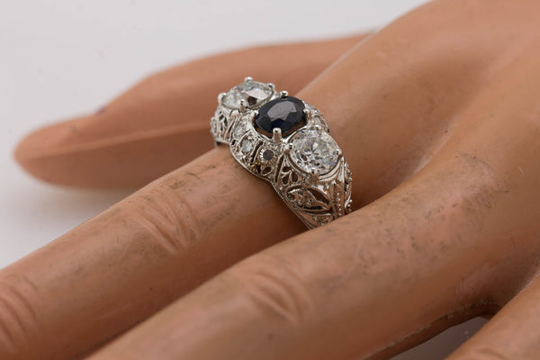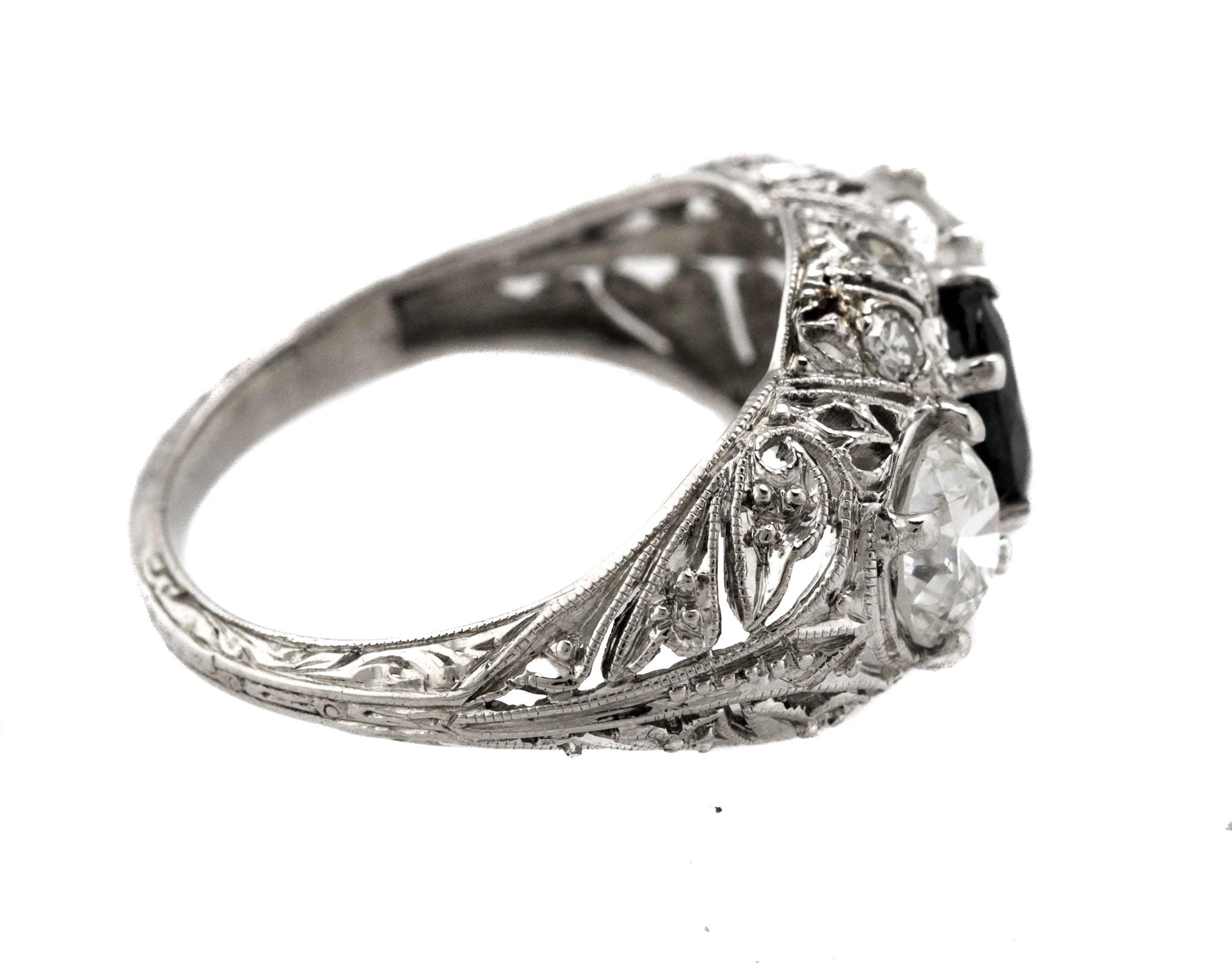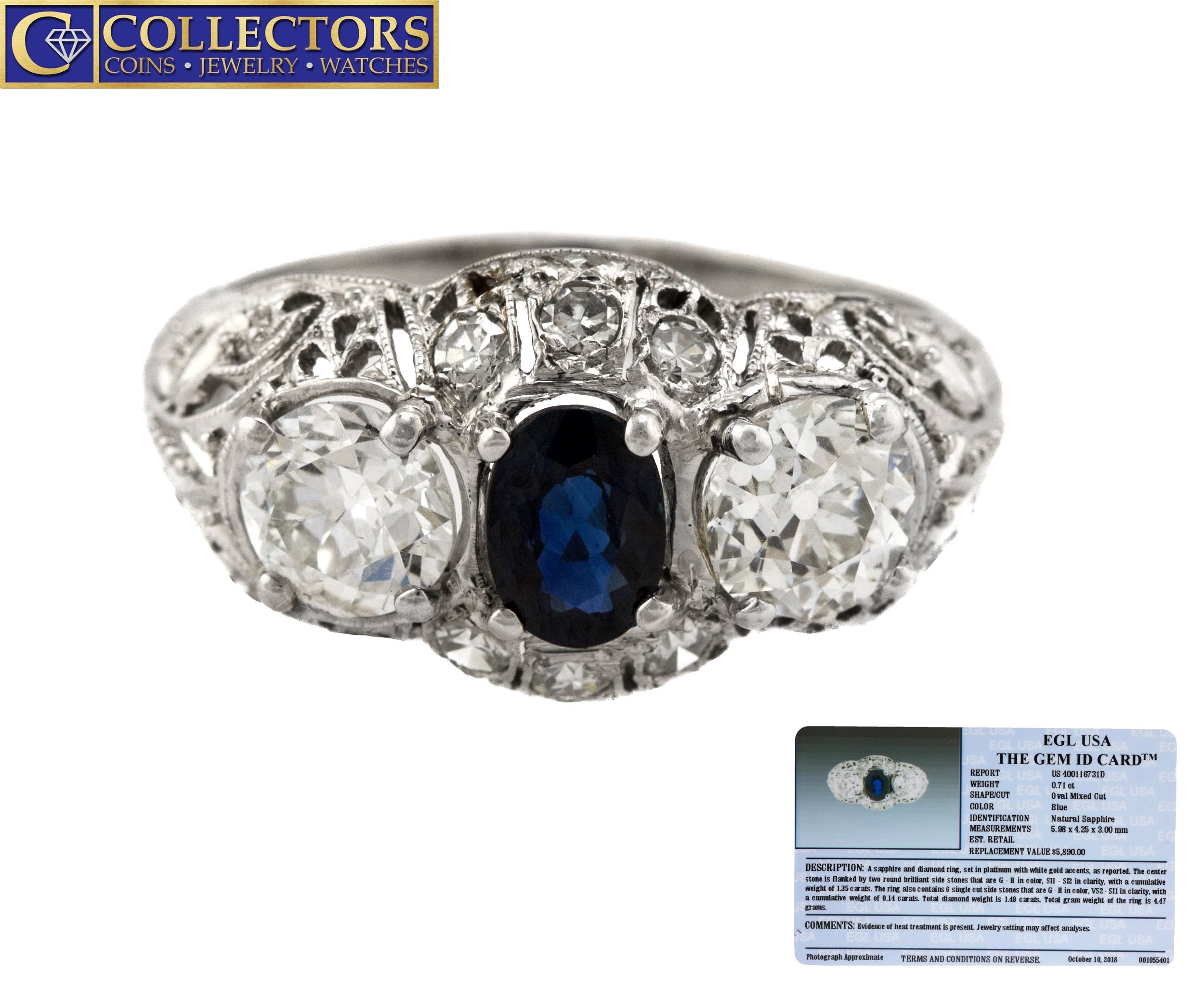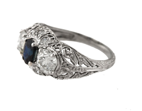 Ladies Antique Art Deco Platinum 0.71 CT Blue Sapphire Diamond Filigree Ring EGL