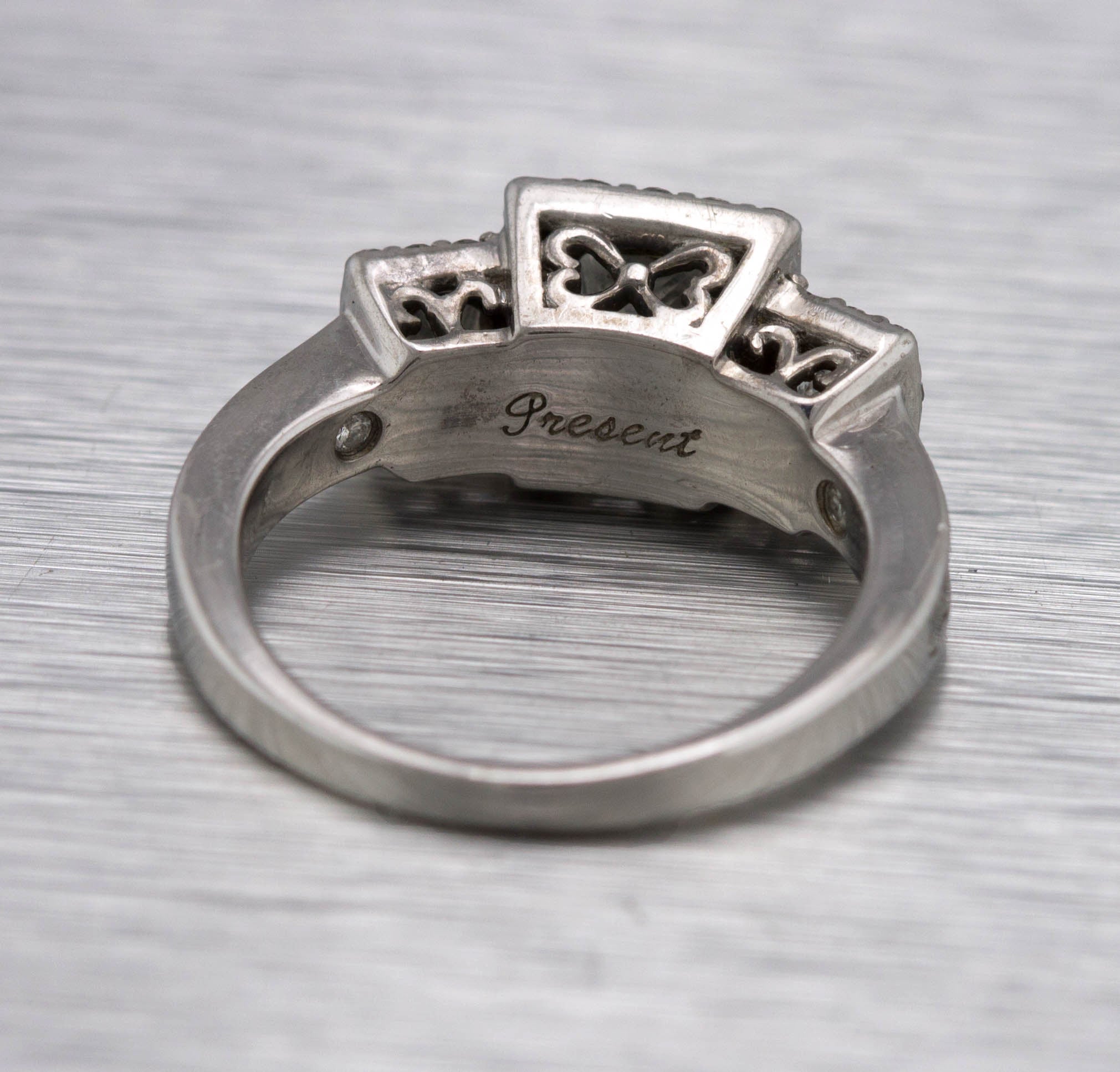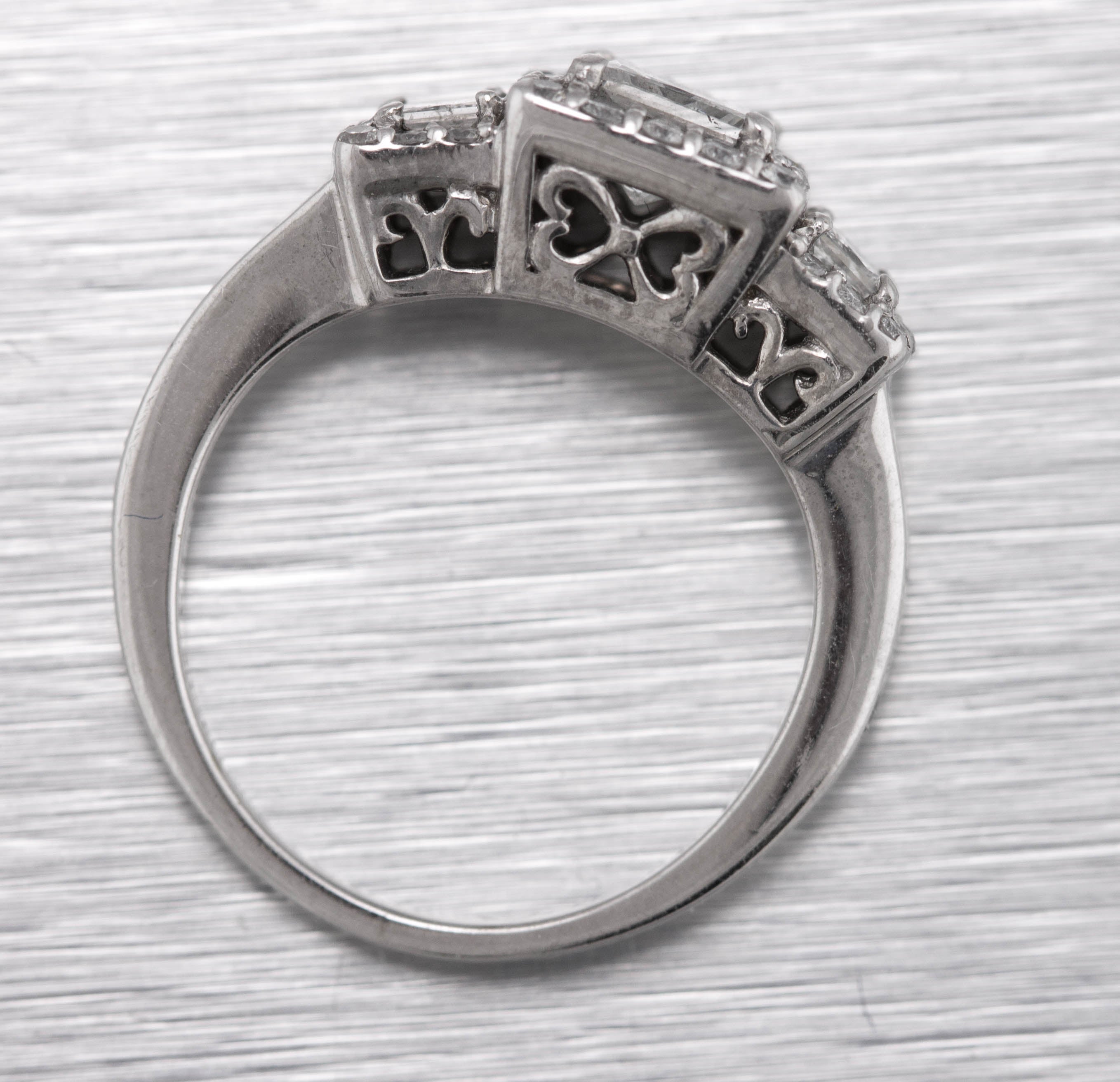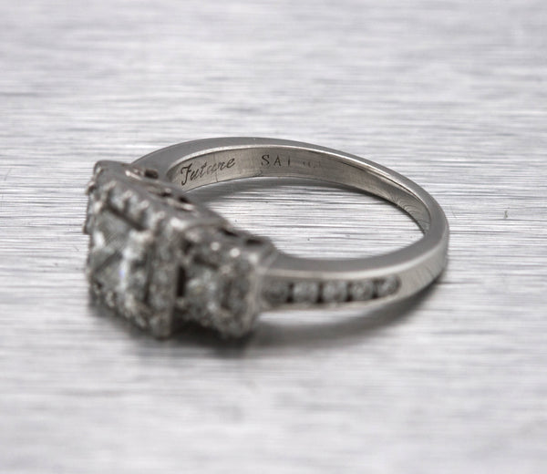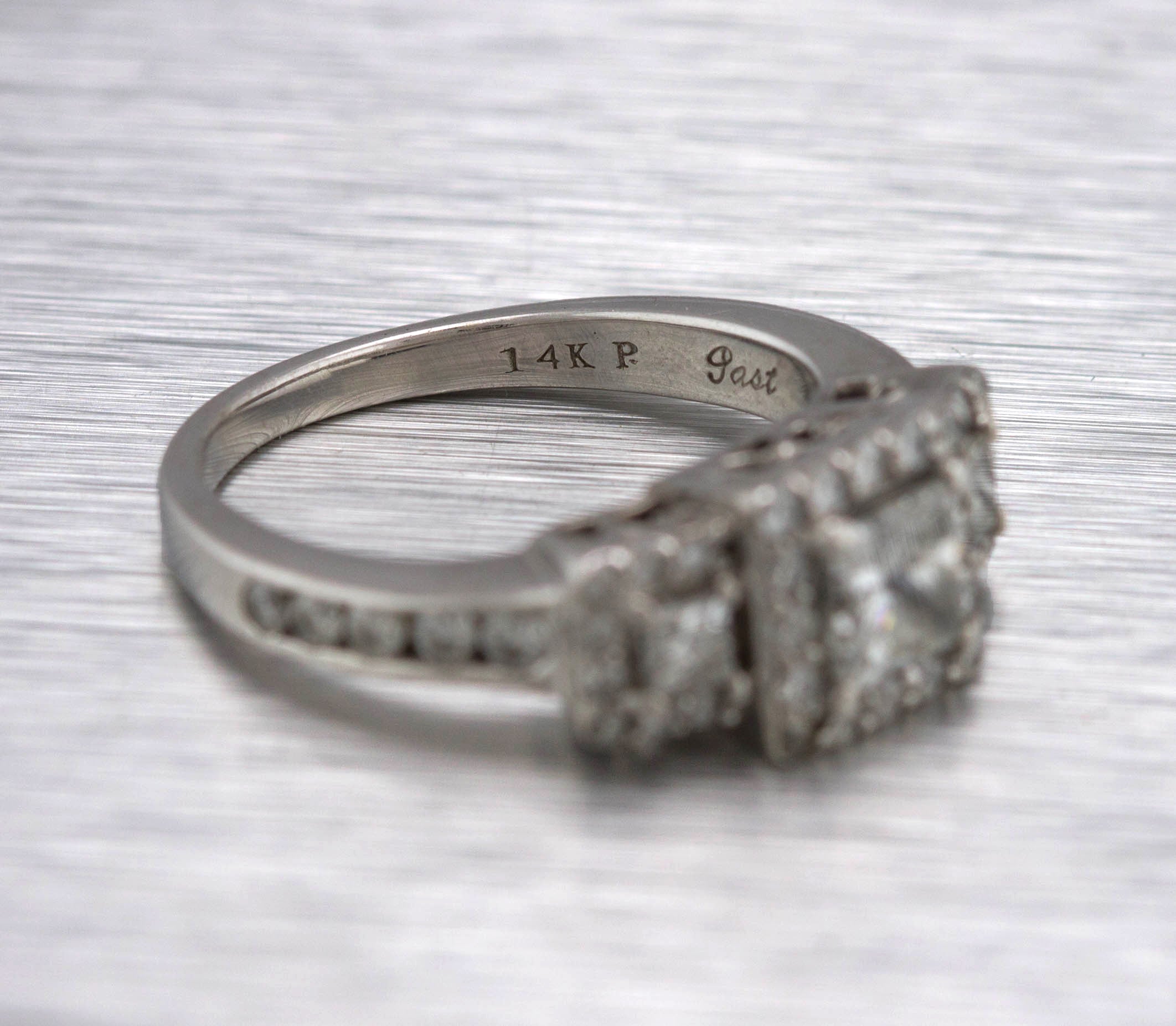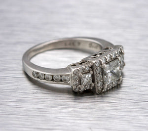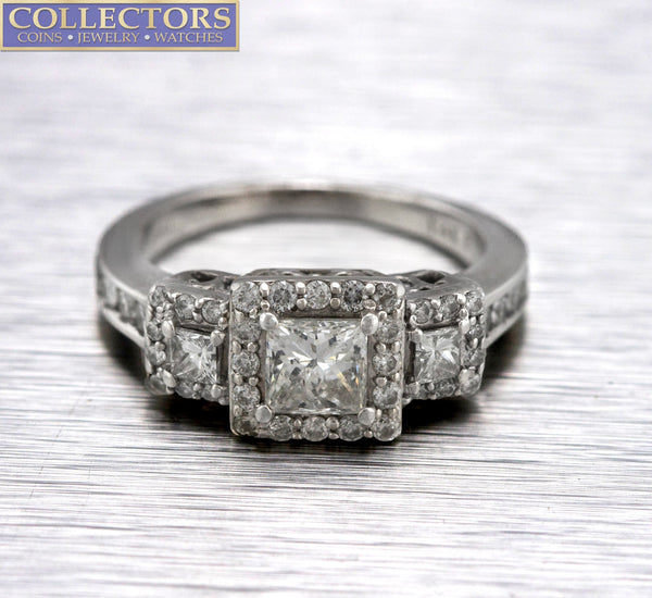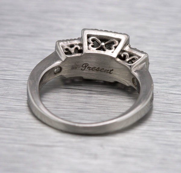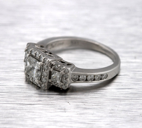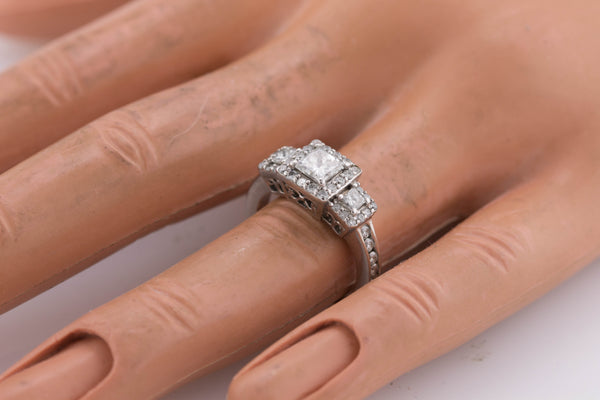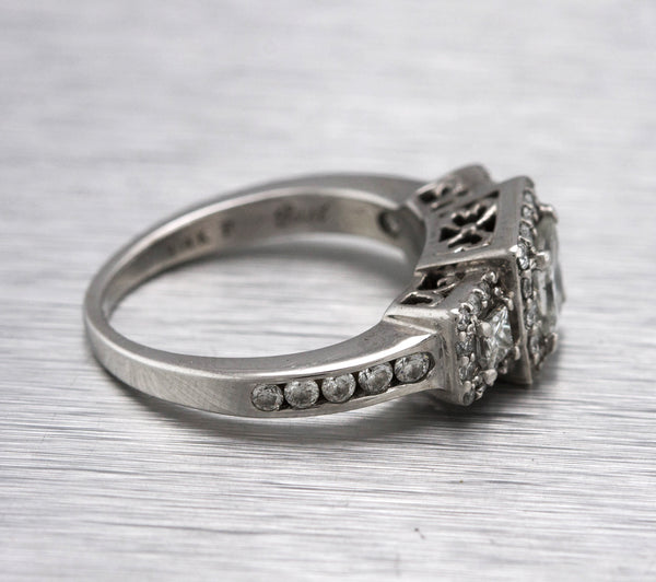 Ladies Art Deco 14K White Gold 0.97ctw Princess Cut Diamond Engagement Ring