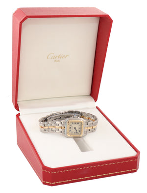 Ladies Cartier Panthere 18K Two Tone Gold Steel Ivory 22mm Quartz Watch 166921