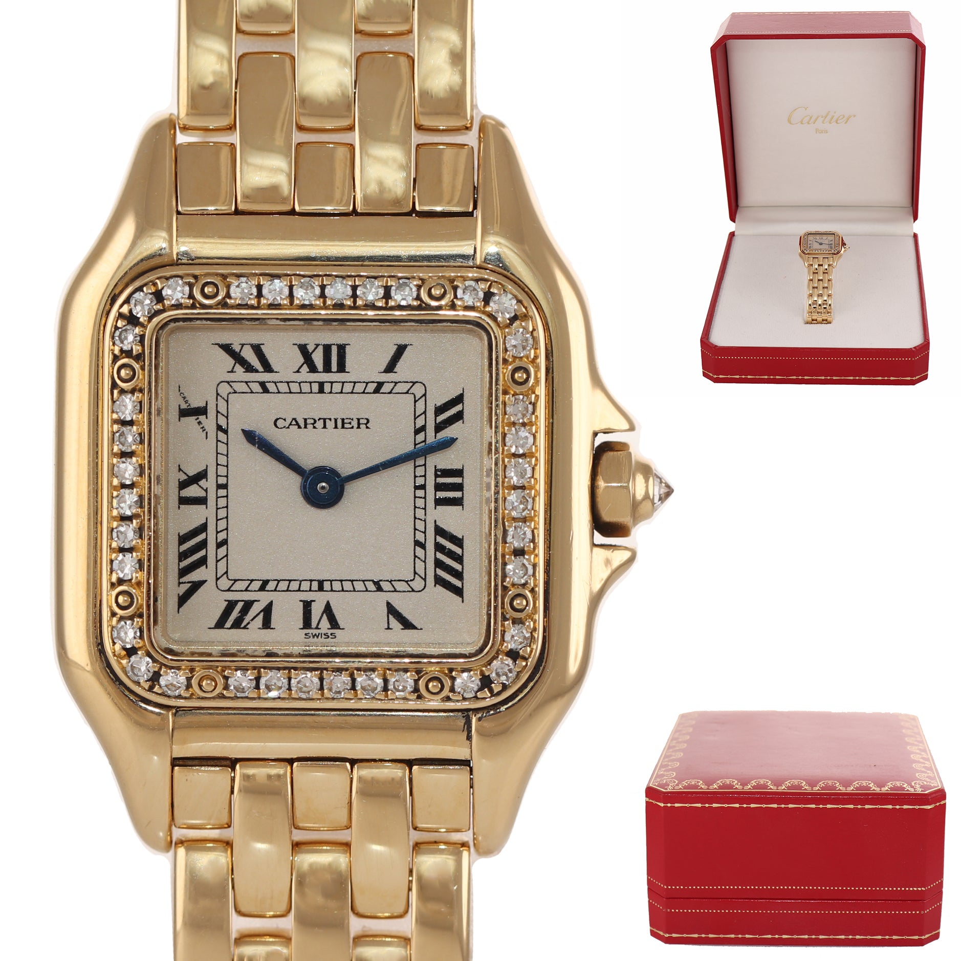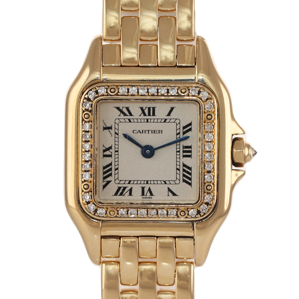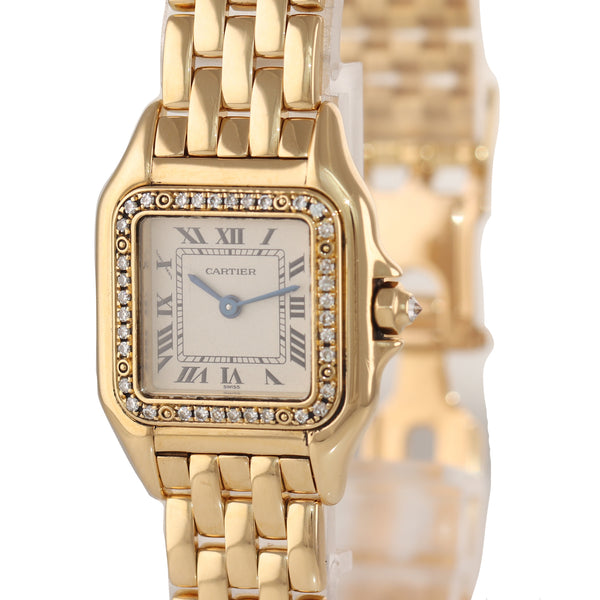 Ladies Cartier Panthere Diamond Ivory Roman 18k Yellow Gold 22mm 1280 Watch