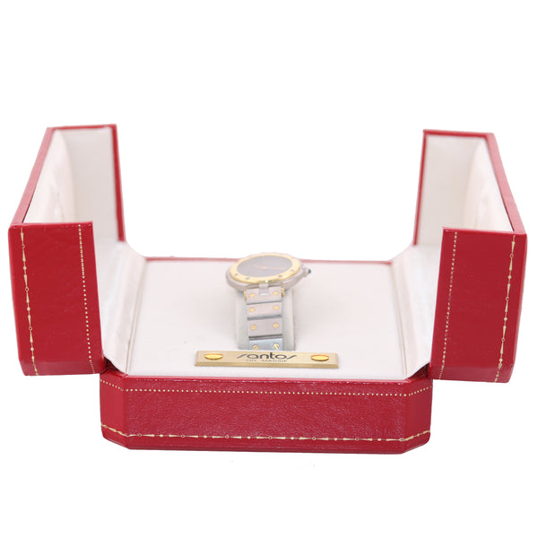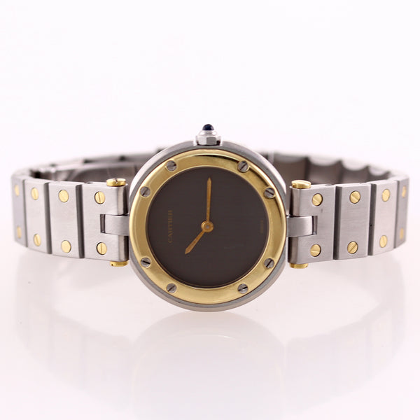 Ladies Cartier Santos Rhonde Steel 18k Gold Two Tone 27mm Quartz Grey Watch