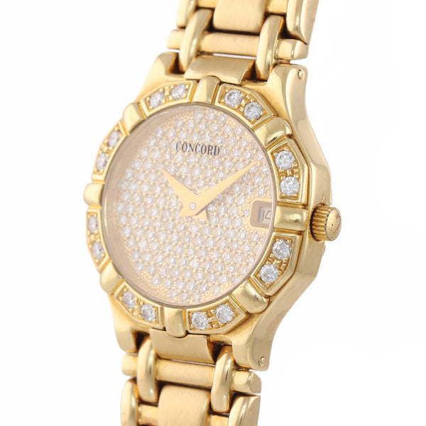 Ladies Concord Saratoga 18k Yellow Gold Diamond Quartz 23mm Watch 51-73-287
