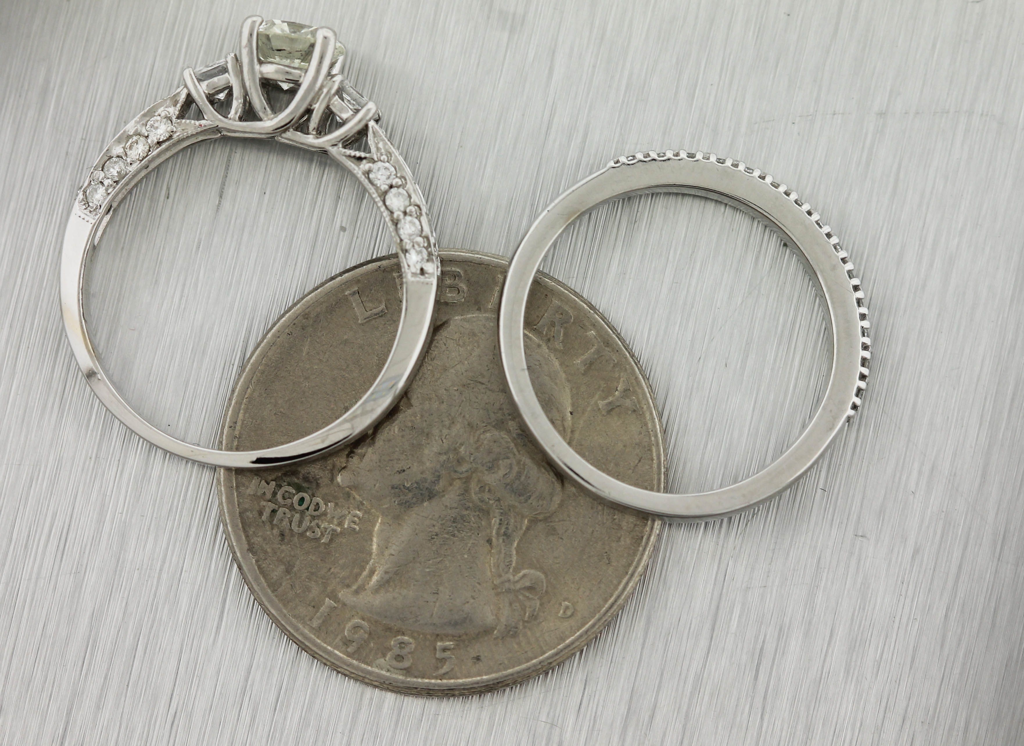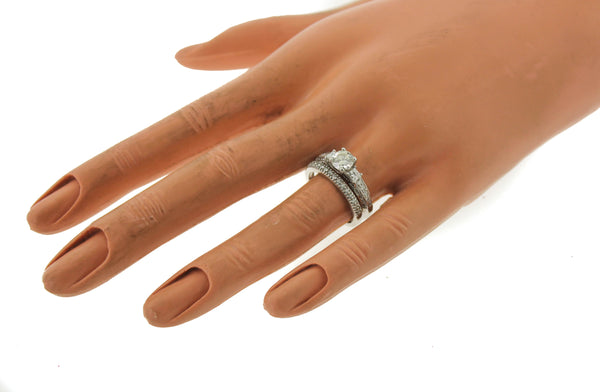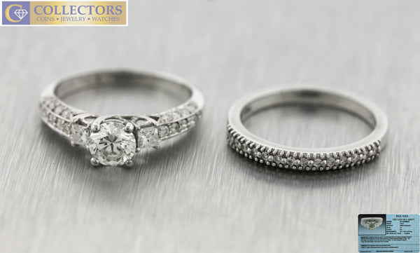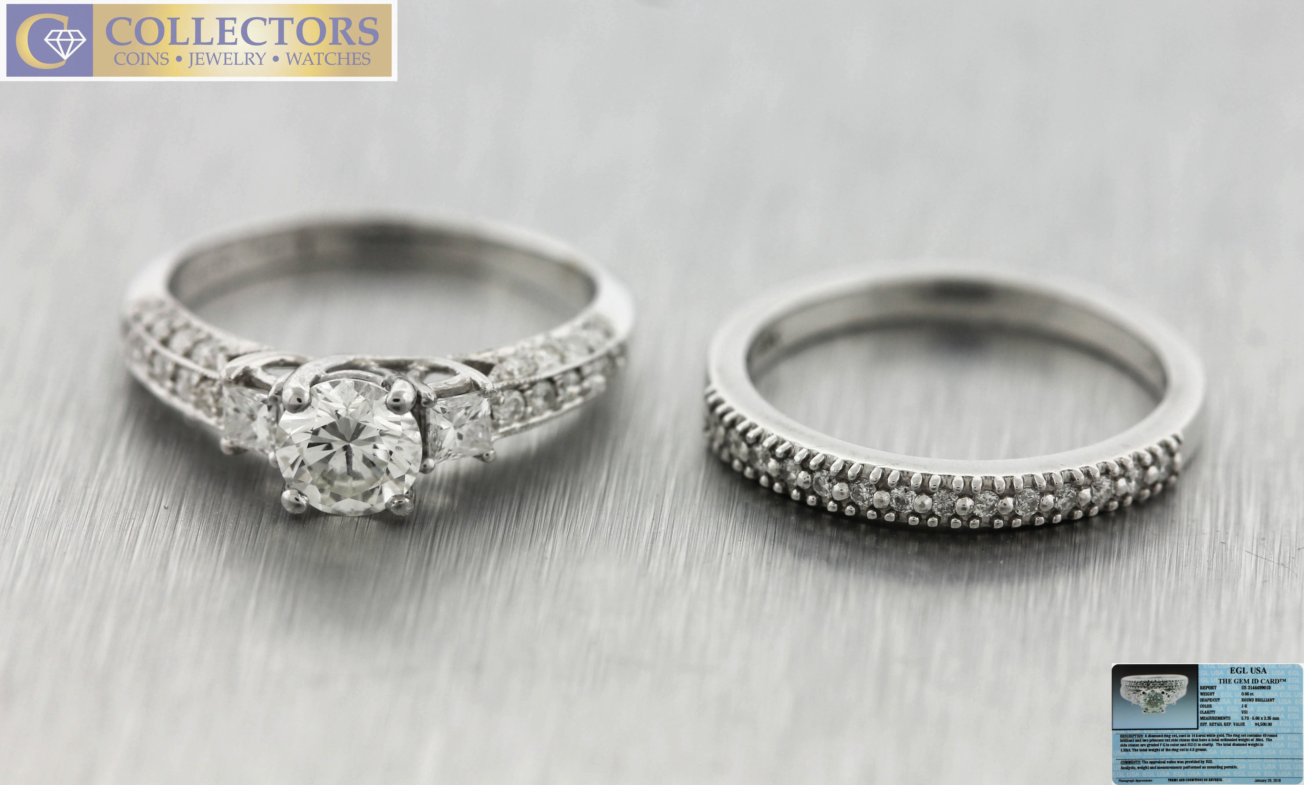 Ladies Estate 14K White Gold 1.32ctw Diamond Engagement EGL Ring Band Set
