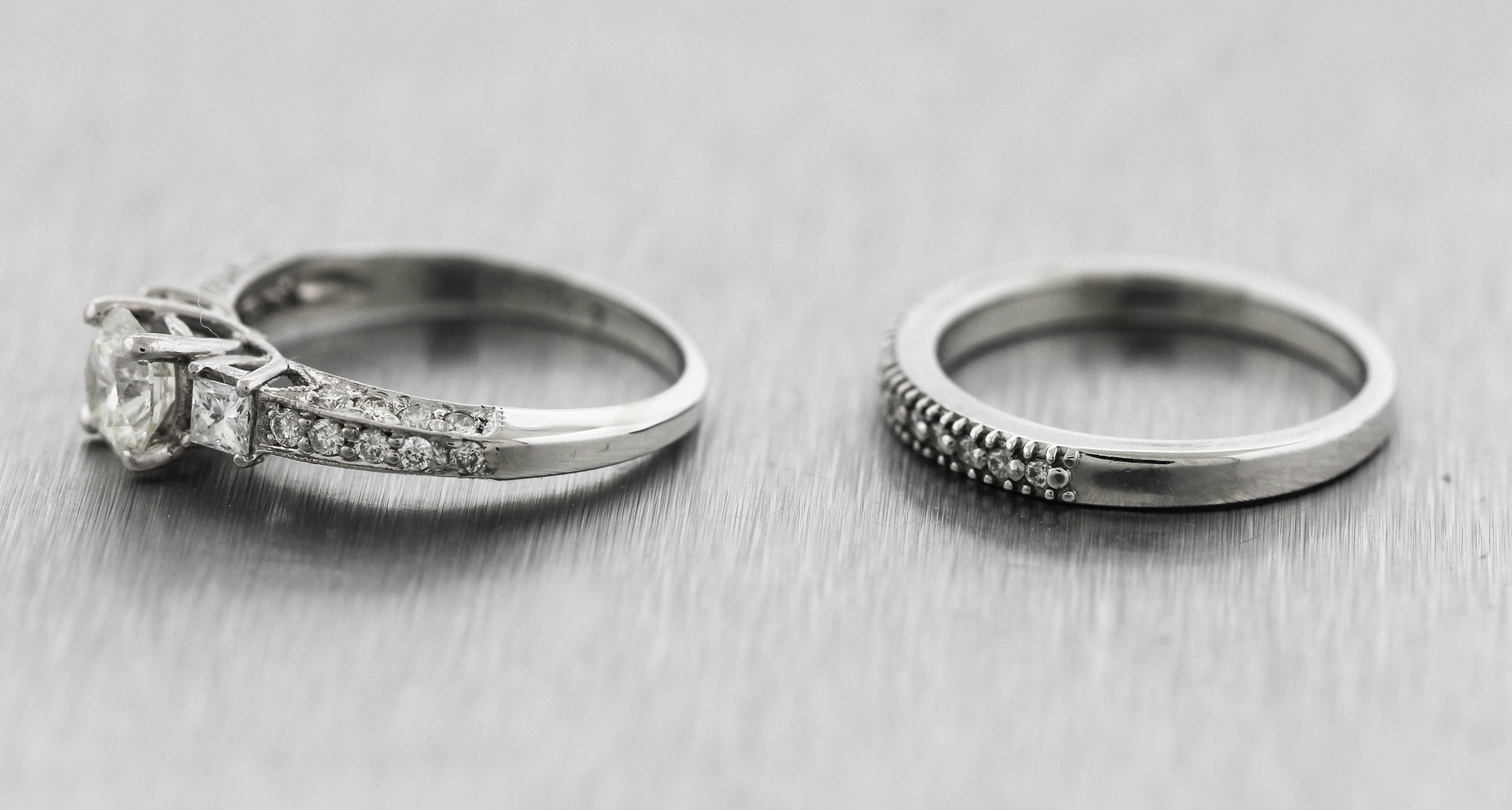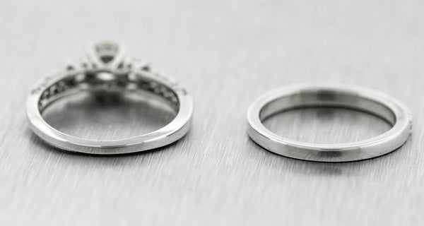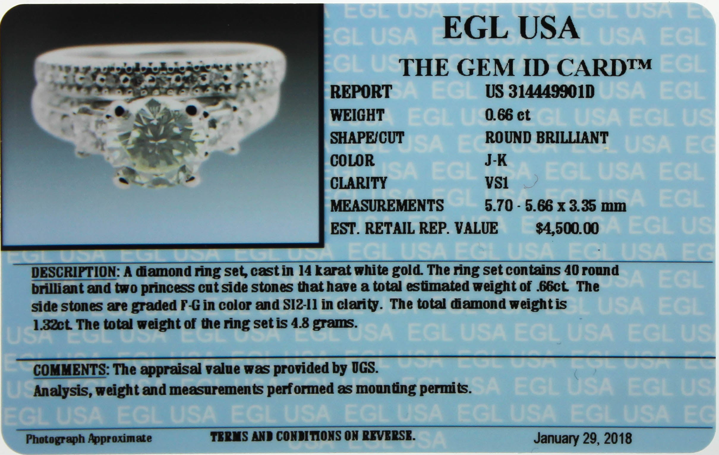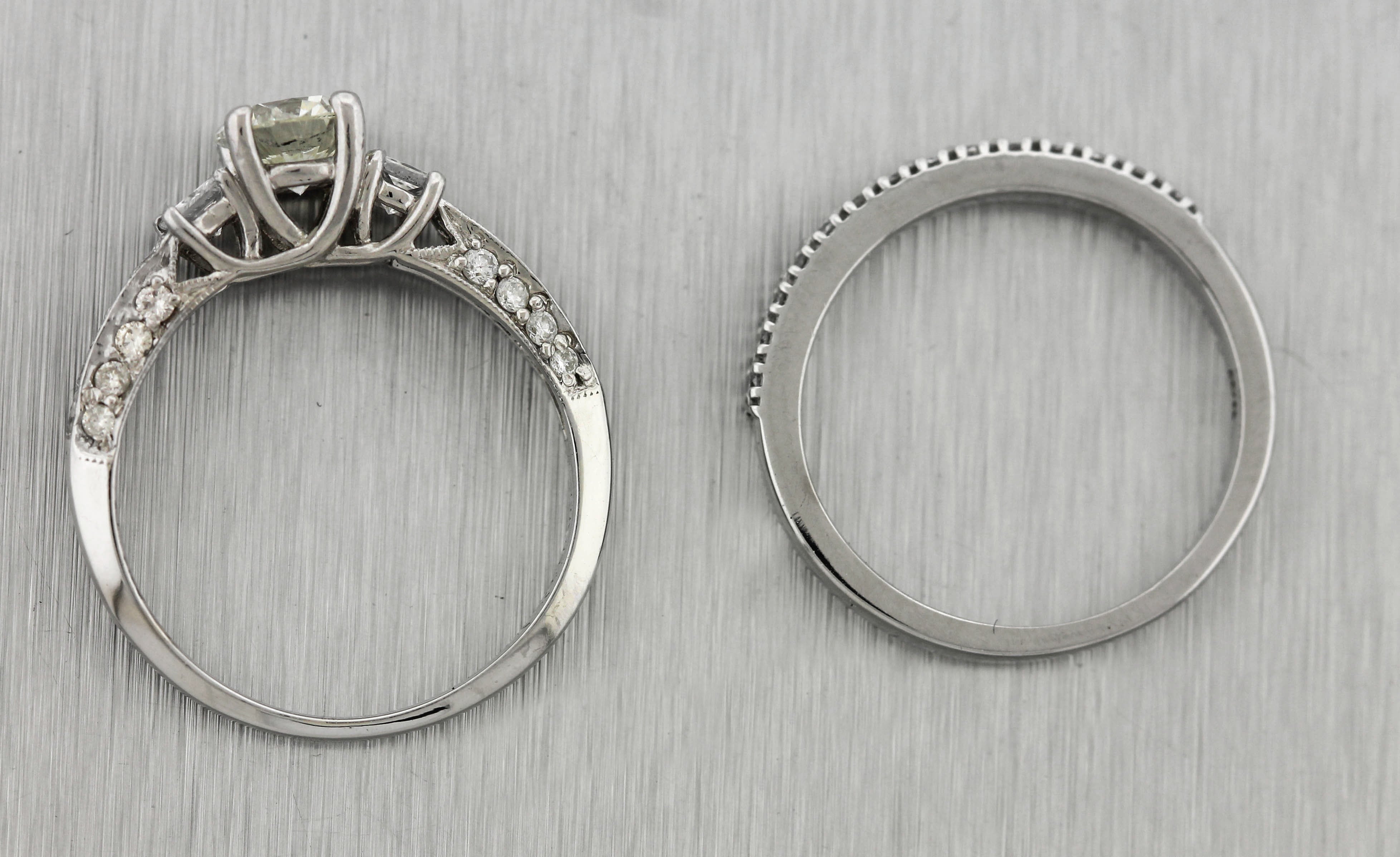 Ladies Estate 14K White Gold 1.32ctw Diamond Engagement EGL Ring Band Set
