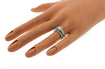 The band is a size 5.75 and the engagement ring is a size 6.5