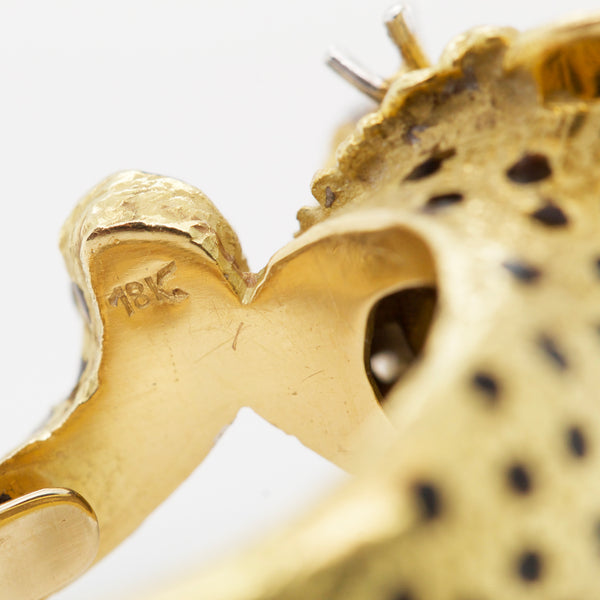 Ladies Estate Vintage 13.4 grams Solid 18k Yellow Gold & .04ctw Diamond Jaguar Ring Size 6