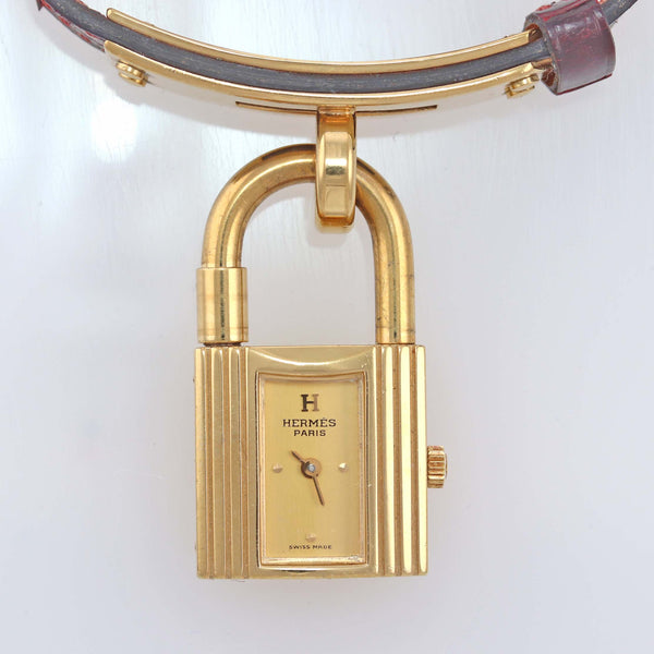 Ladies Hermes Kelly Gold Plated Padlock Lock Leather Band Bag Watch C9
