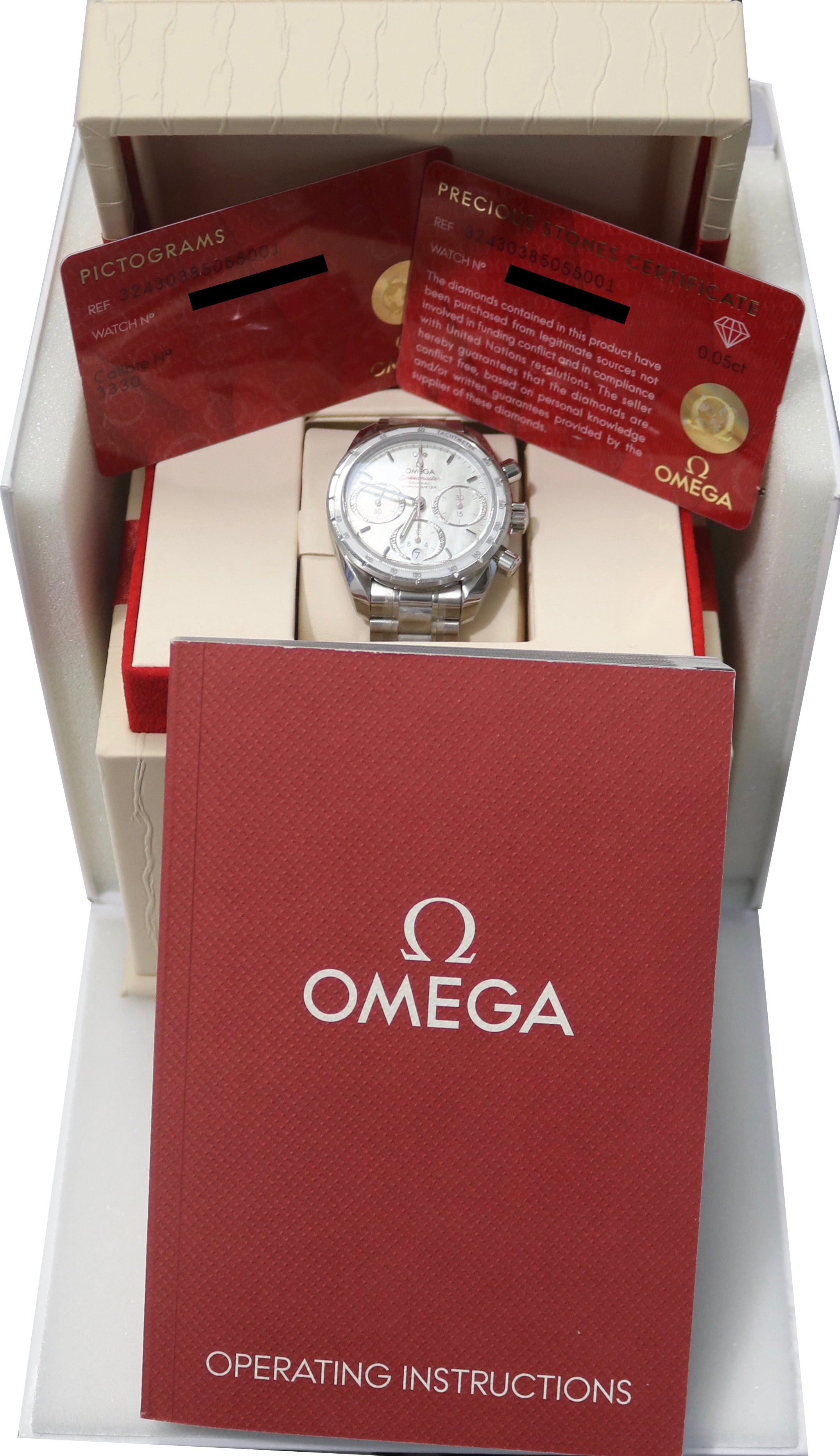 NEW Ladies Omega Speedmaster 38mm Chronograph Diamond MOP 324.30.38.50.55.001