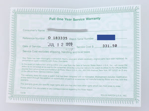 | Papers | Yes, the Rolex includes the pictured Rolex Warranty Papers and a Collectors Coins & Jewelry certificate of authenticity and appraisal will be included as per buyer request. |