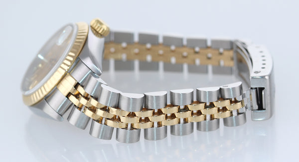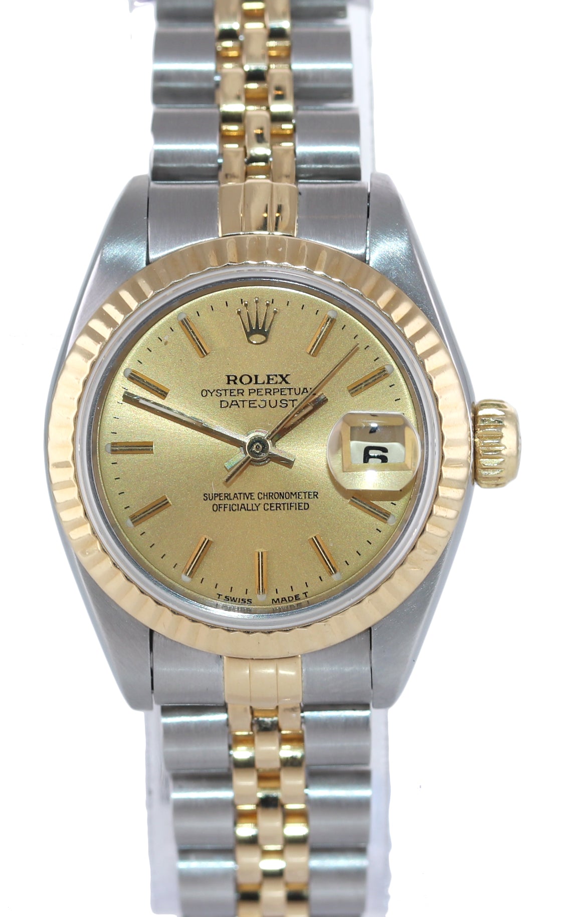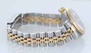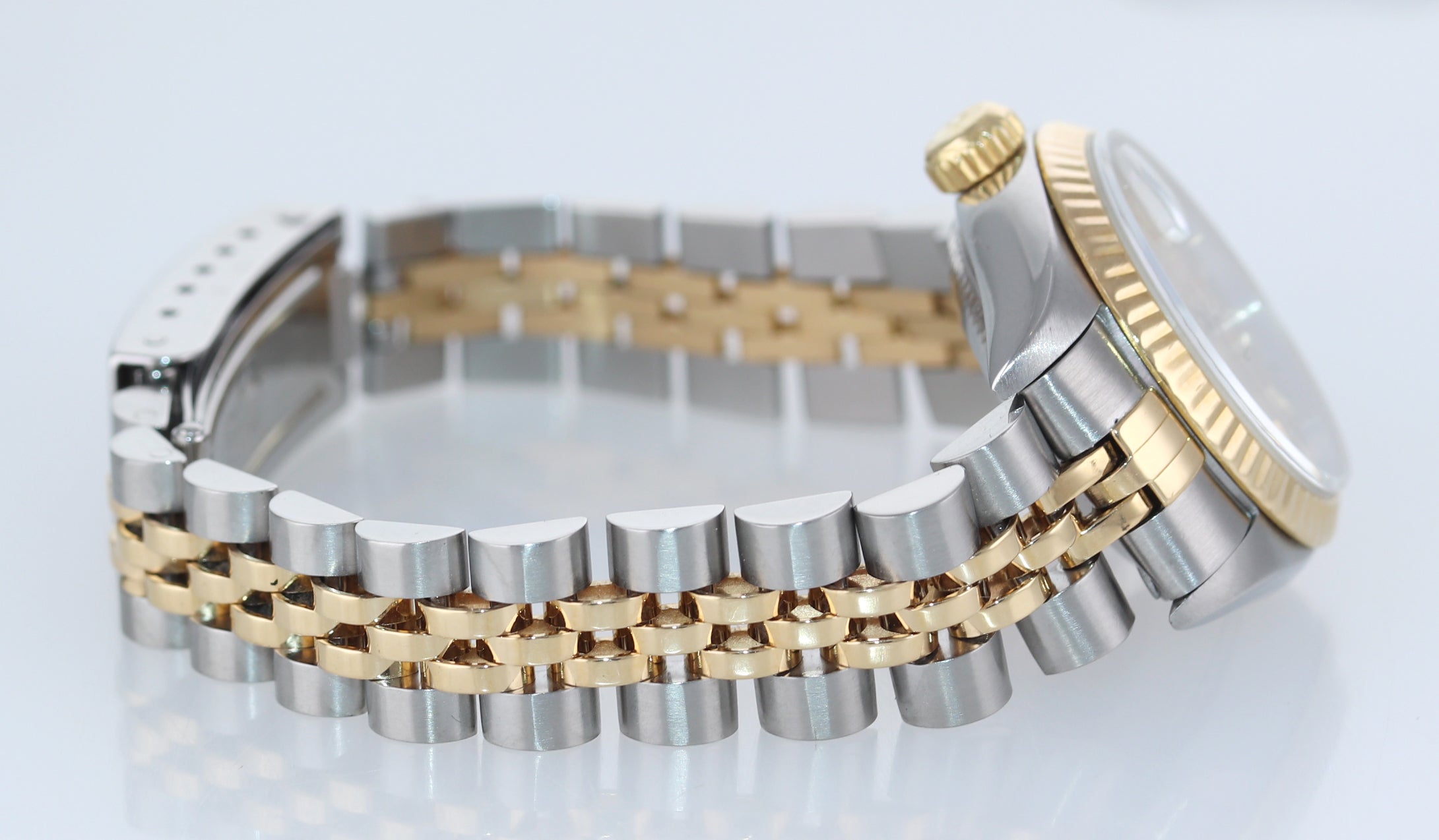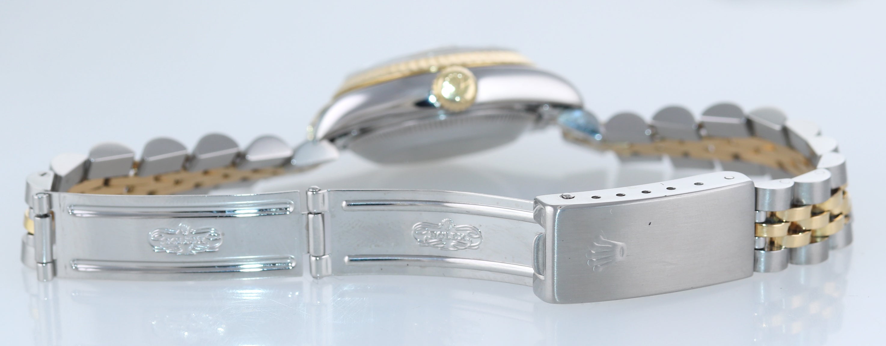 | Band | Two-Tone (18K Yellow Gold/Stainless Steel) Jubilee Bracelet with a folding deployment clasp. Some stretch. |
