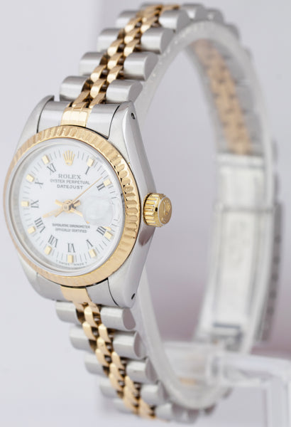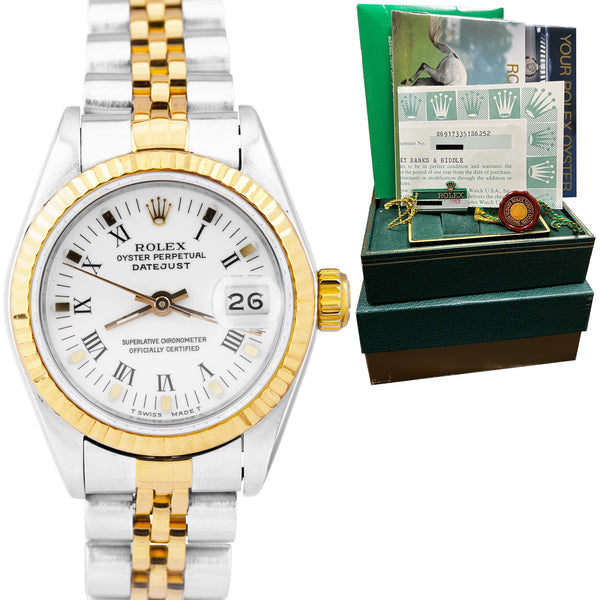 Ladies Rolex DateJust 26mm 18K Gold Two-Tone Black TAPESTRY Jubilee Watch 69173