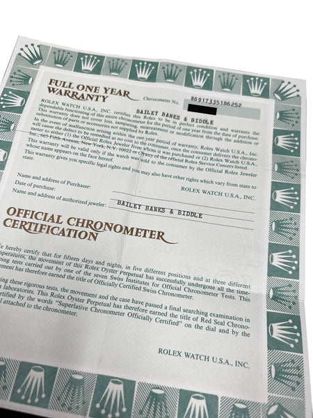 | Serial Number | L-Series (The original Rolex warranty paperwork is undated/unnamed!) |