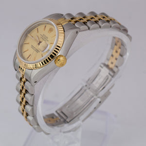 Ladies Rolex DateJust 26mm 18K Stainless Two Tone Champagne Jubilee Watch 69173