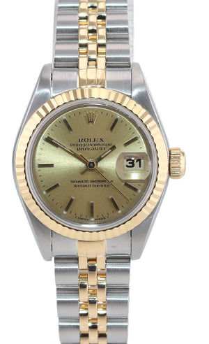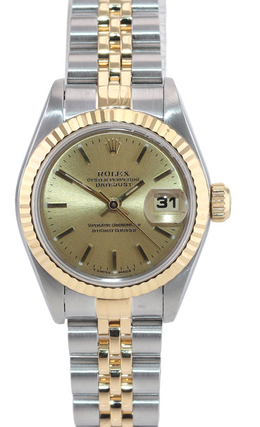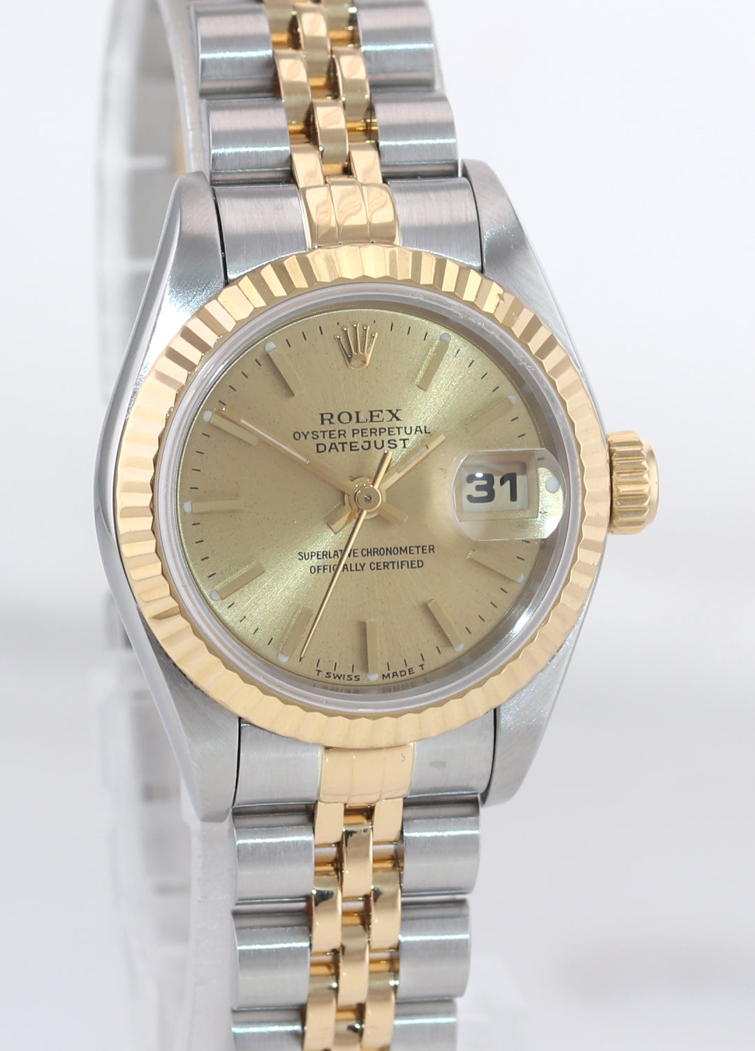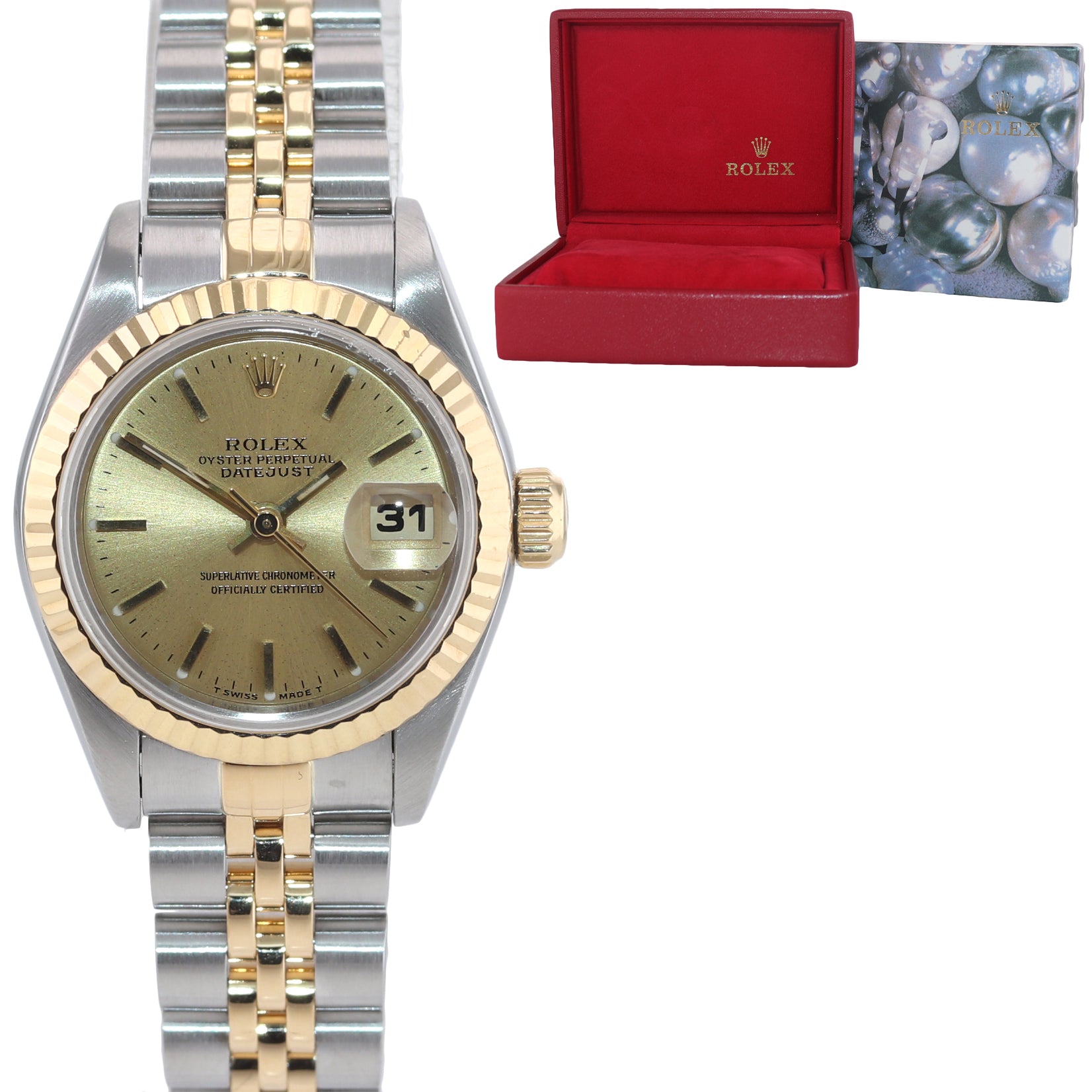 Ladies Rolex DateJust 26mm 69173 Two Tone Gold Steel Champagne Watch Box