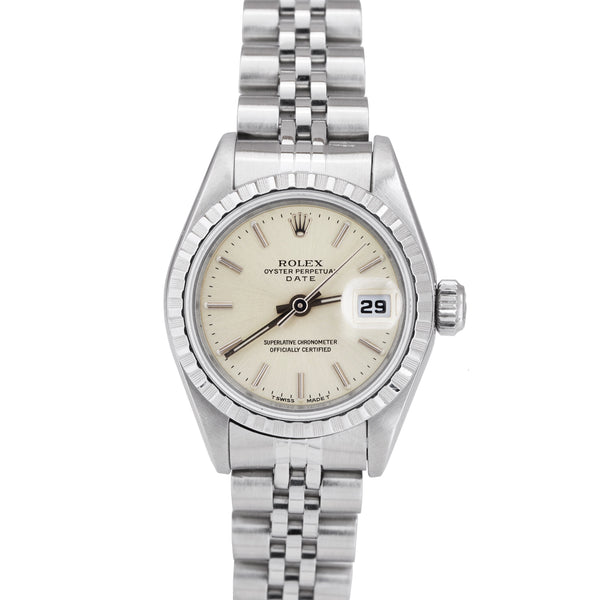 Ladies Rolex DateJust 26mm Silver Stainless Engine Turned Jubilee Watch 69240