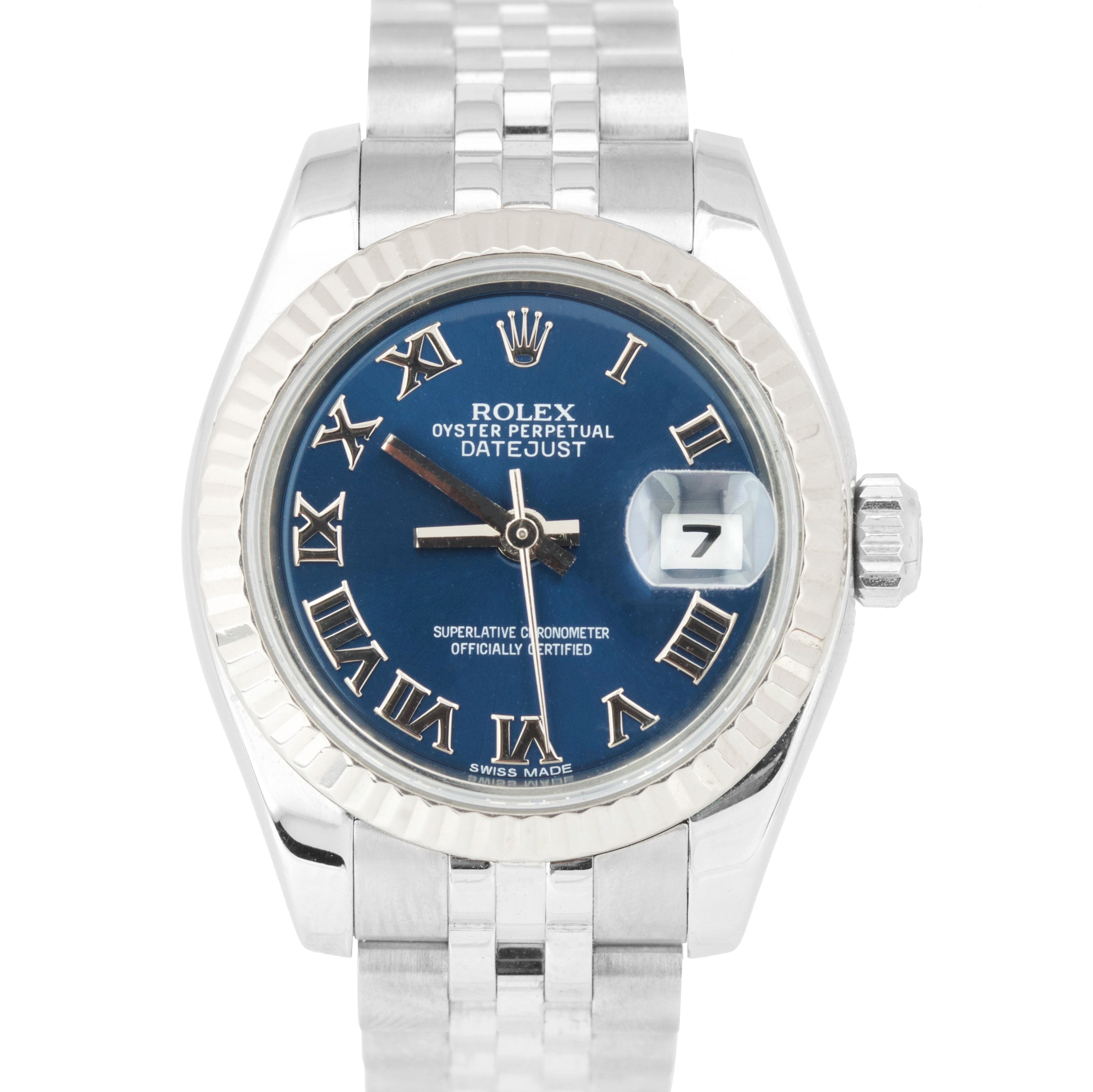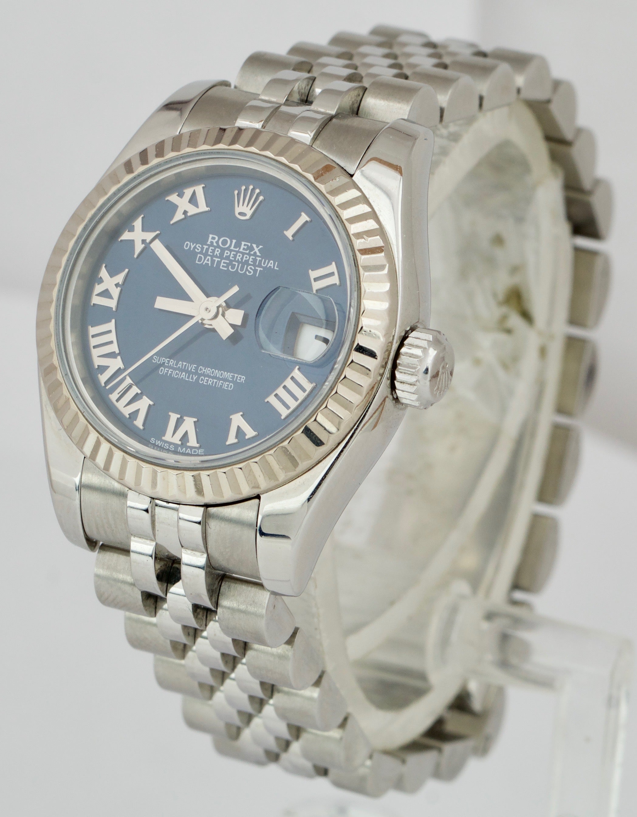MINT Rolex DateJust 26mm Stainless Steel Blue Roman Fluted Jubilee Watch 179174