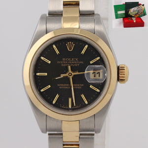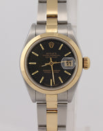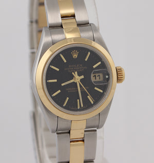 Ladies Rolex DateJust 79163 Steel 18k Gold Two Tone 26mm Tapestry Black Watch N8.