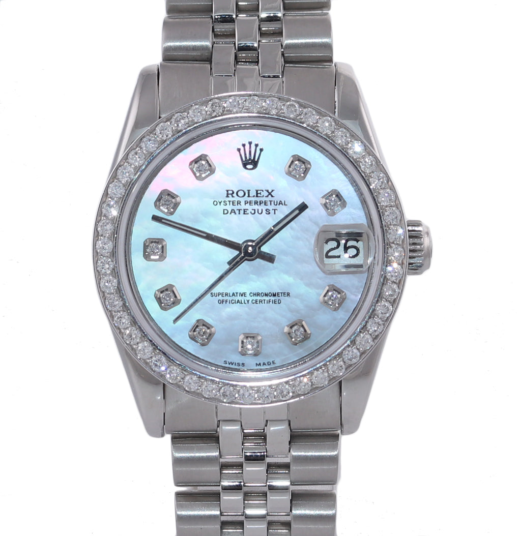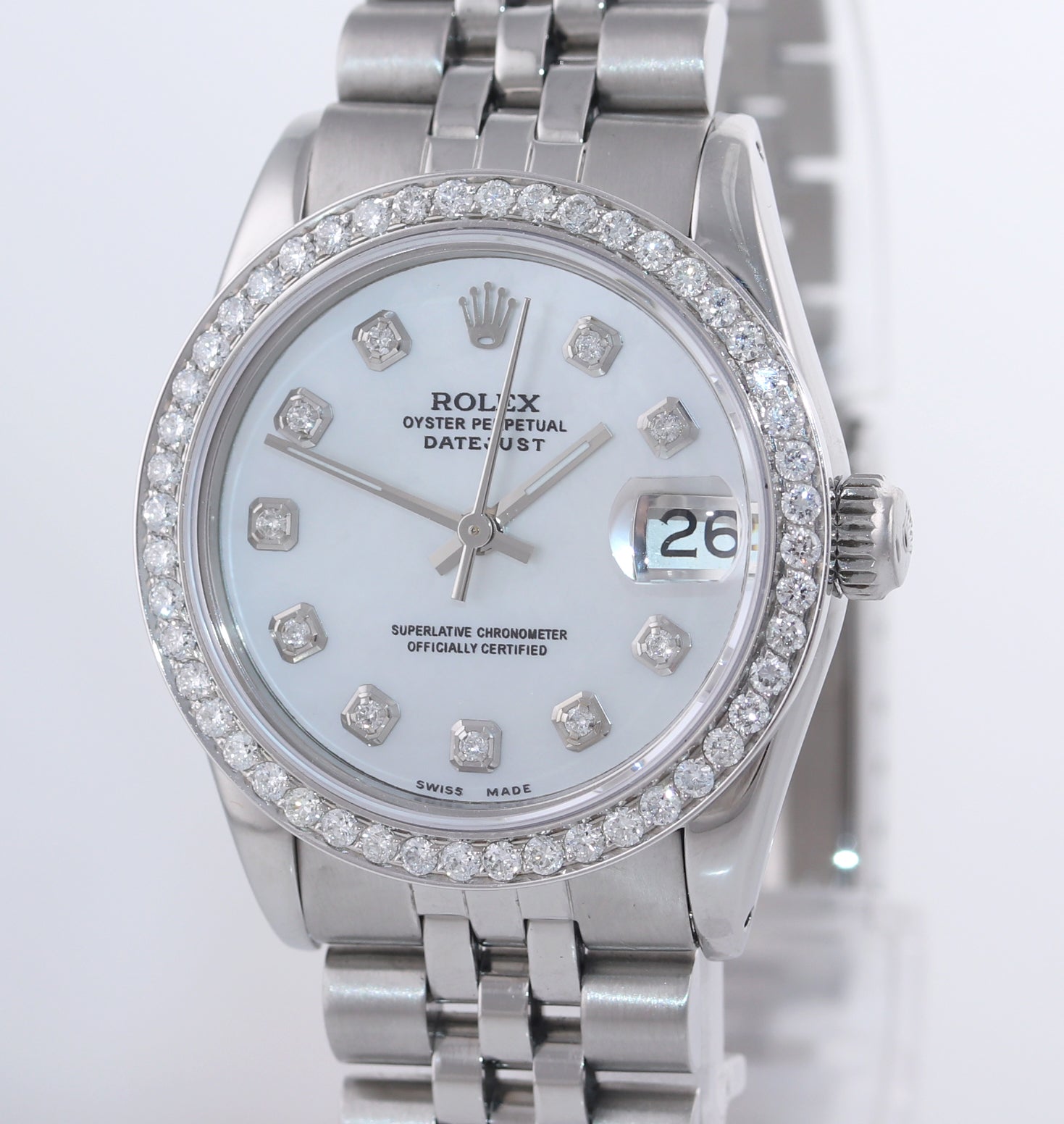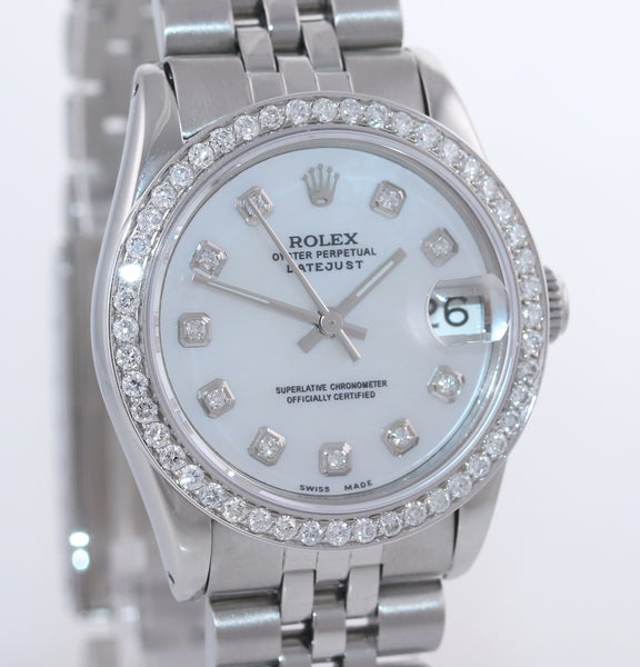Ladies Rolex DateJust Mid-Size 31mm MOP Diamond 68240 Steel Jubilee Watch