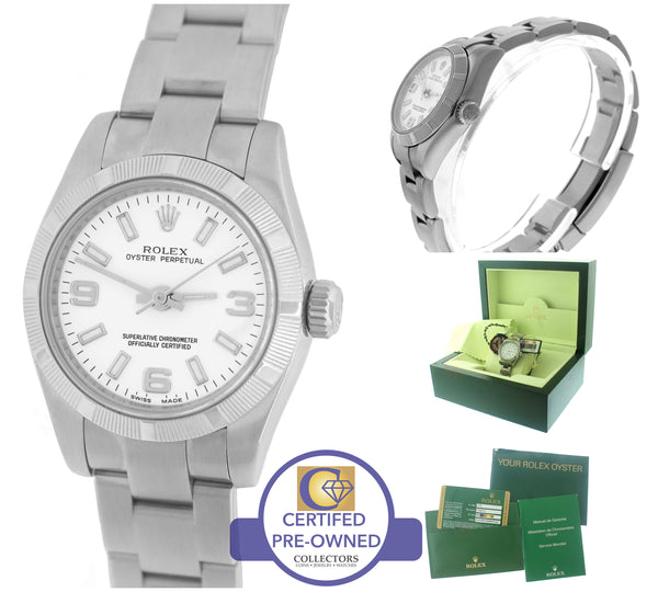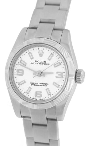 2008 ENGRAVED Ladies Rolex Oyster Perpetual 176210 White 26mm Oyster Watch