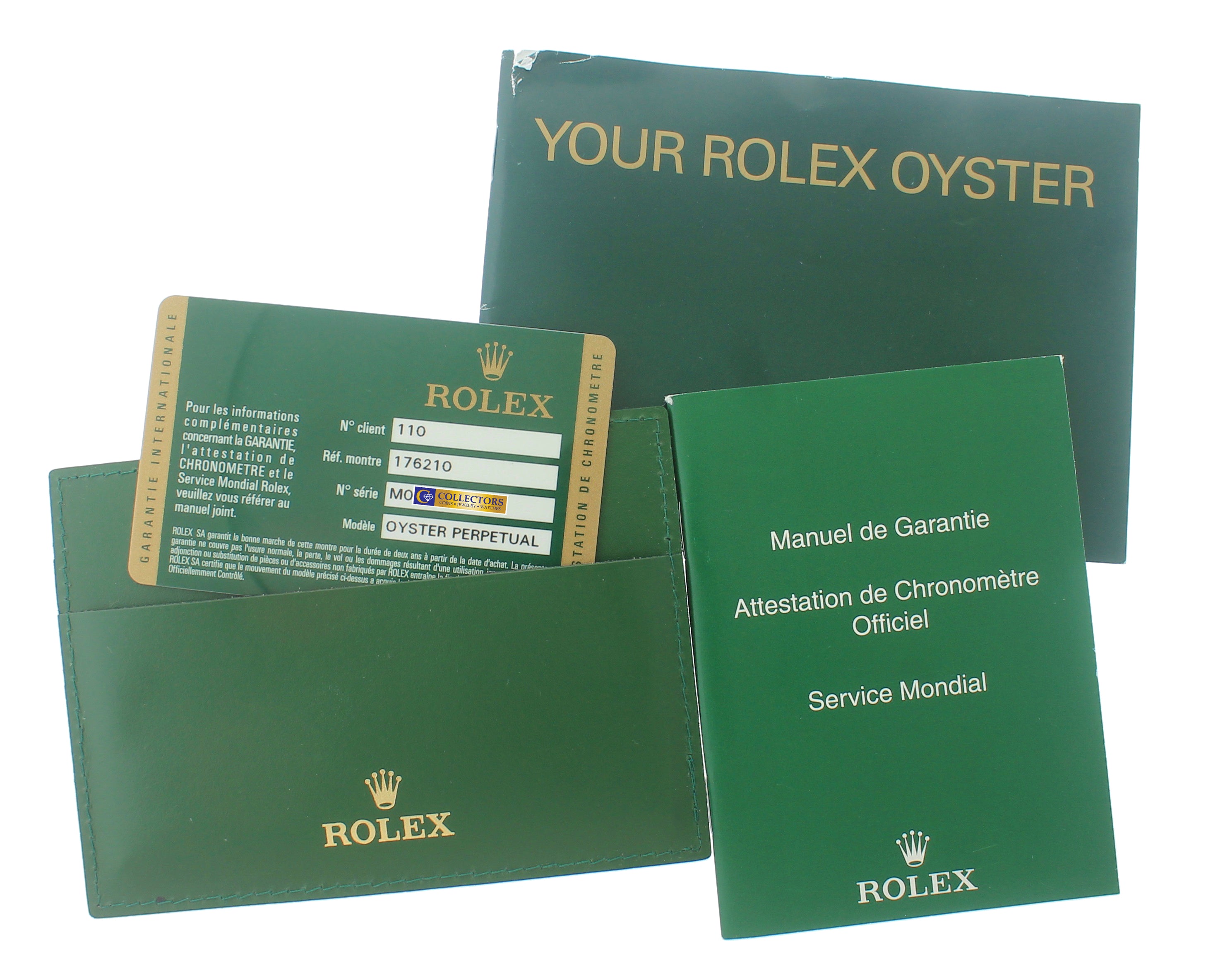 This is the RARE last year of the 176210 reference number featuring a 'No-Holes' case and inner-bezel (flange/rehaut) engraving including "ROLEX" several times and the watch's unique serial number!