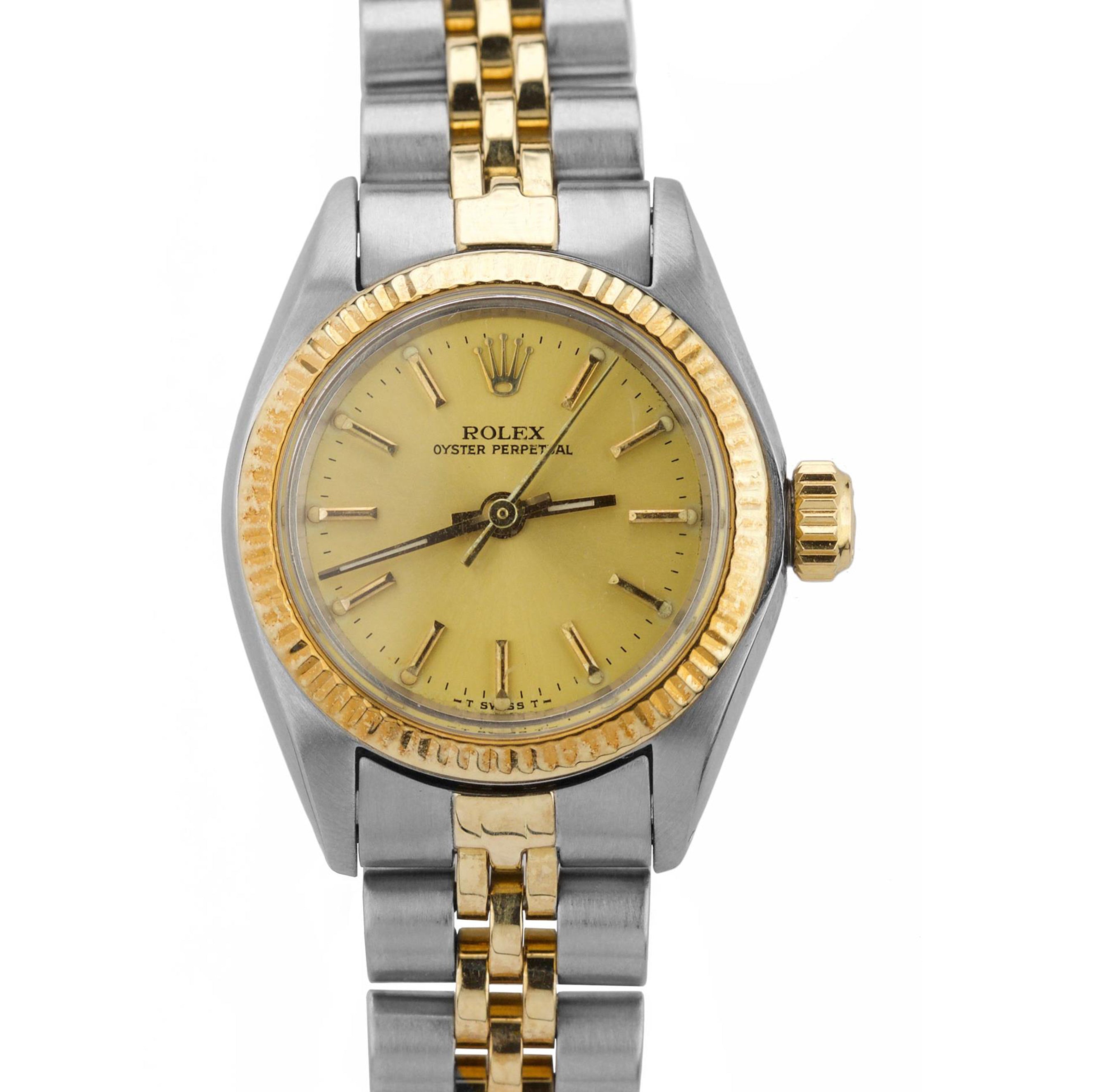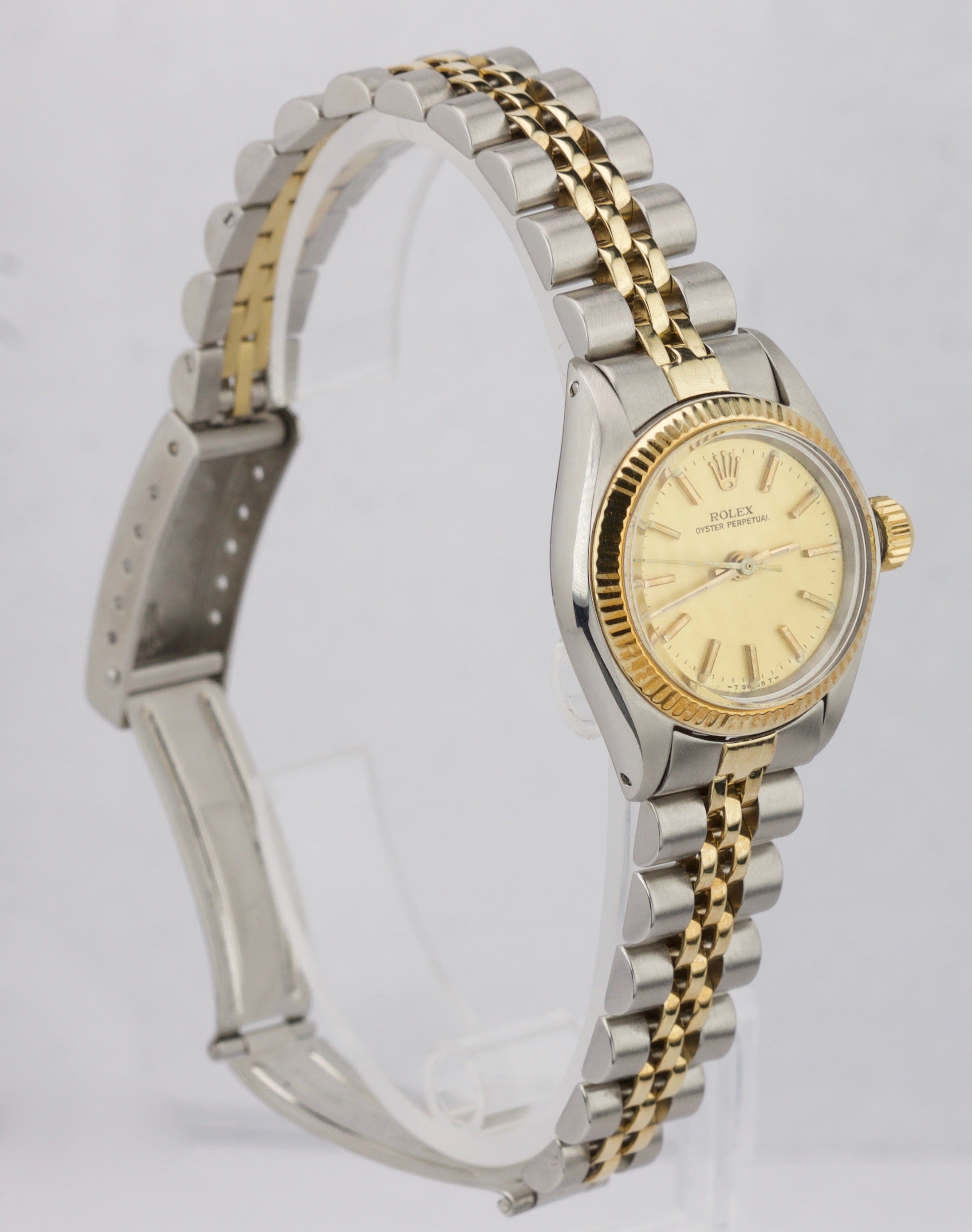Ladies Rolex Oyster Perpetual 24mm Champagne 6719 Two-Tone Steel Jubilee Watch