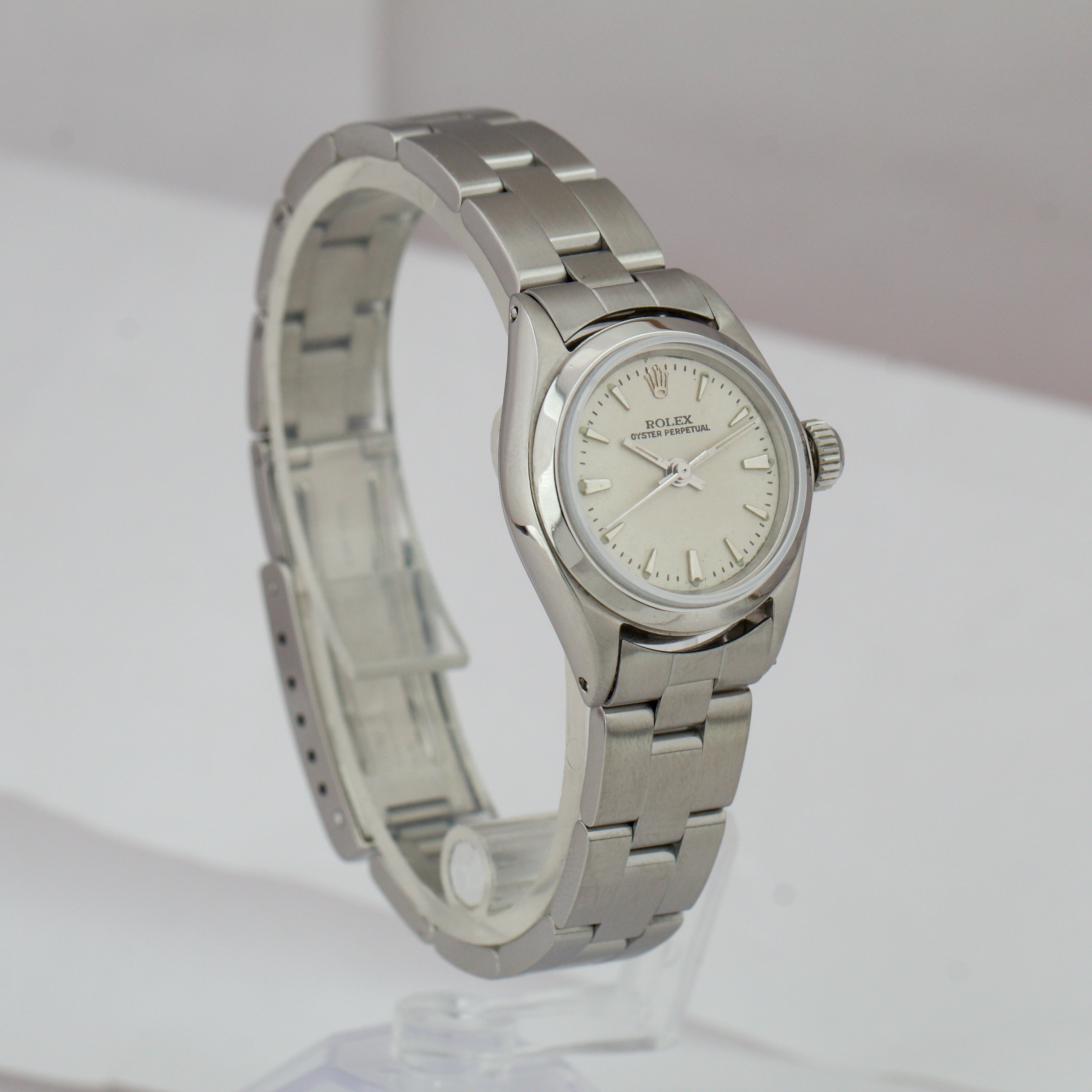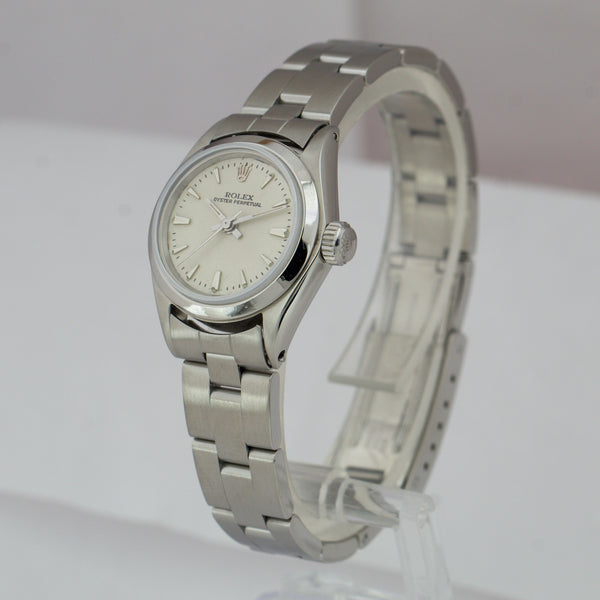 Ladies Rolex Oyster Perpetual 24mm Silver Stainless Steel Watch 6618