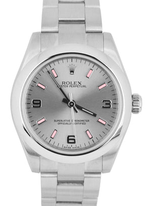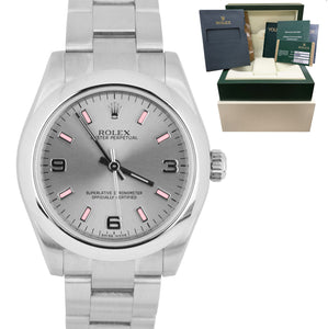 MINT Ladies Rolex Oyster Perpetual 31 Silver 3-6-9 Pink 31mm Oyster 177200 Watch