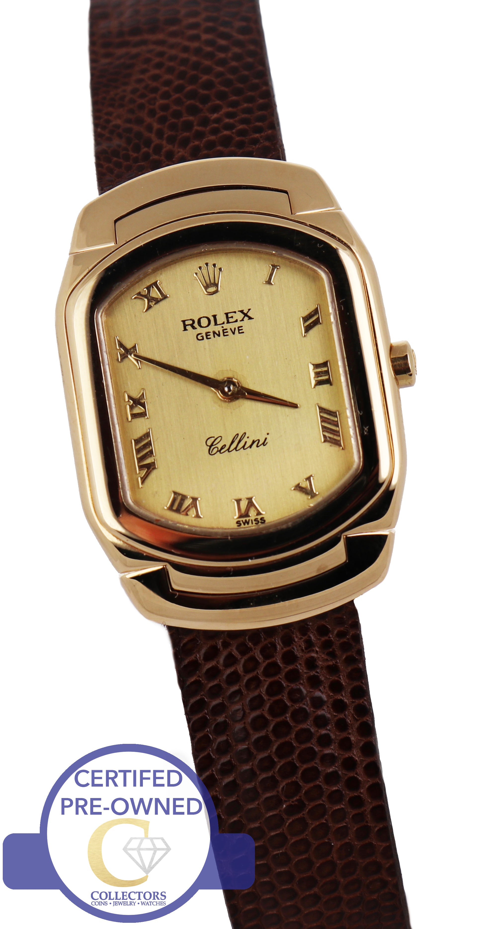 Ladies Vintage Rolex Cellini Geneve 6631 24mm 18K Yellow Gold Leather Watch