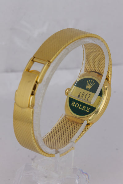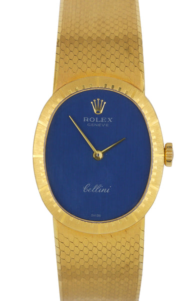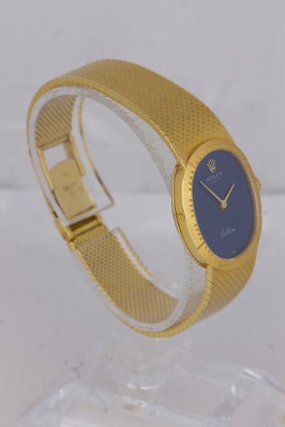Ladies Vintage Rolex Geneve Cellini 18K Yellow Gold 24mm Blue Oval Watch 4074