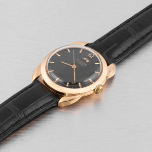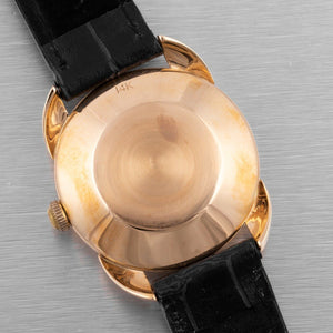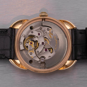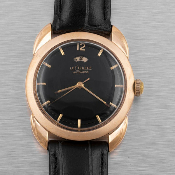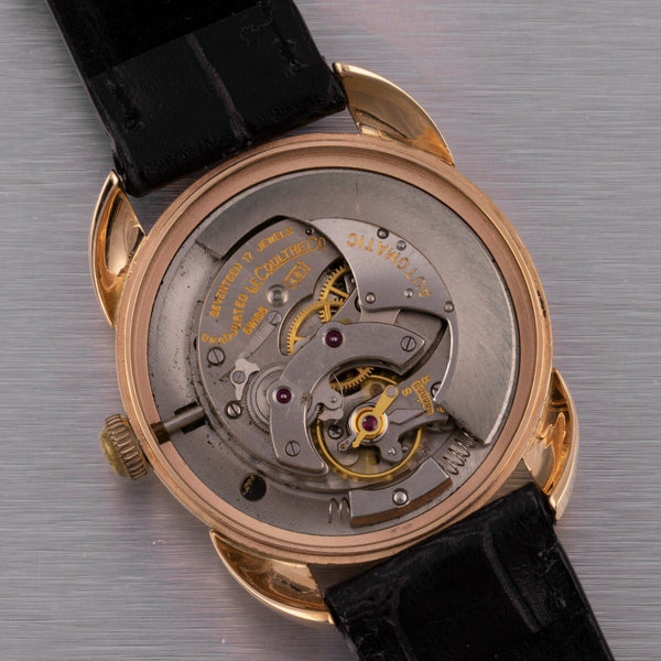 Le Coultre Powermatic 14k Gold 1952 Bumper Power Reserve Black Dial 34mm Watch