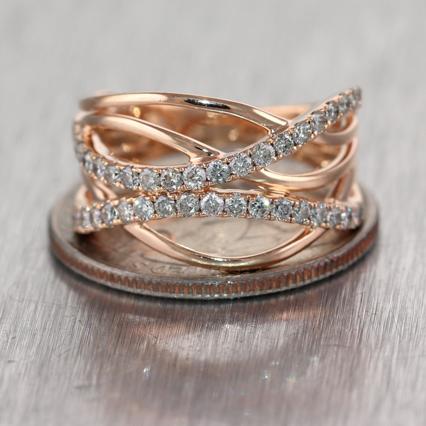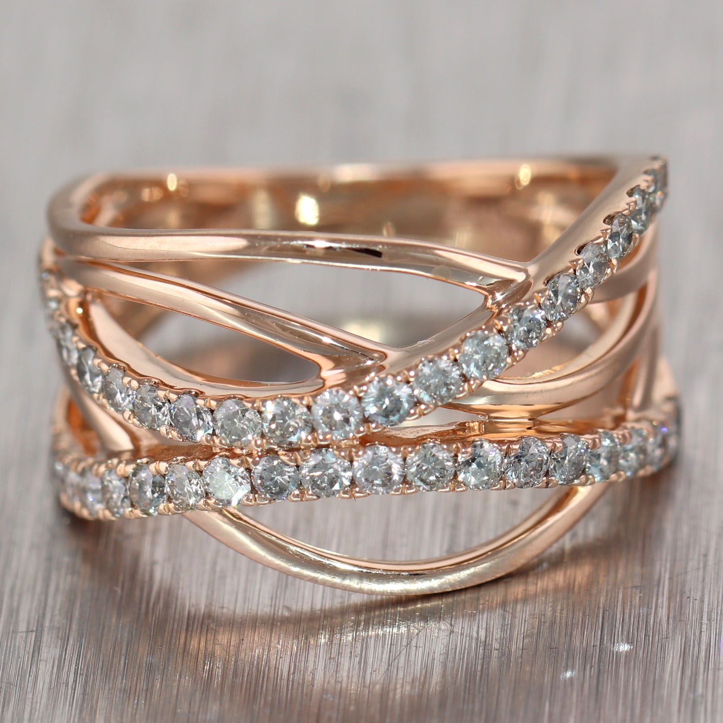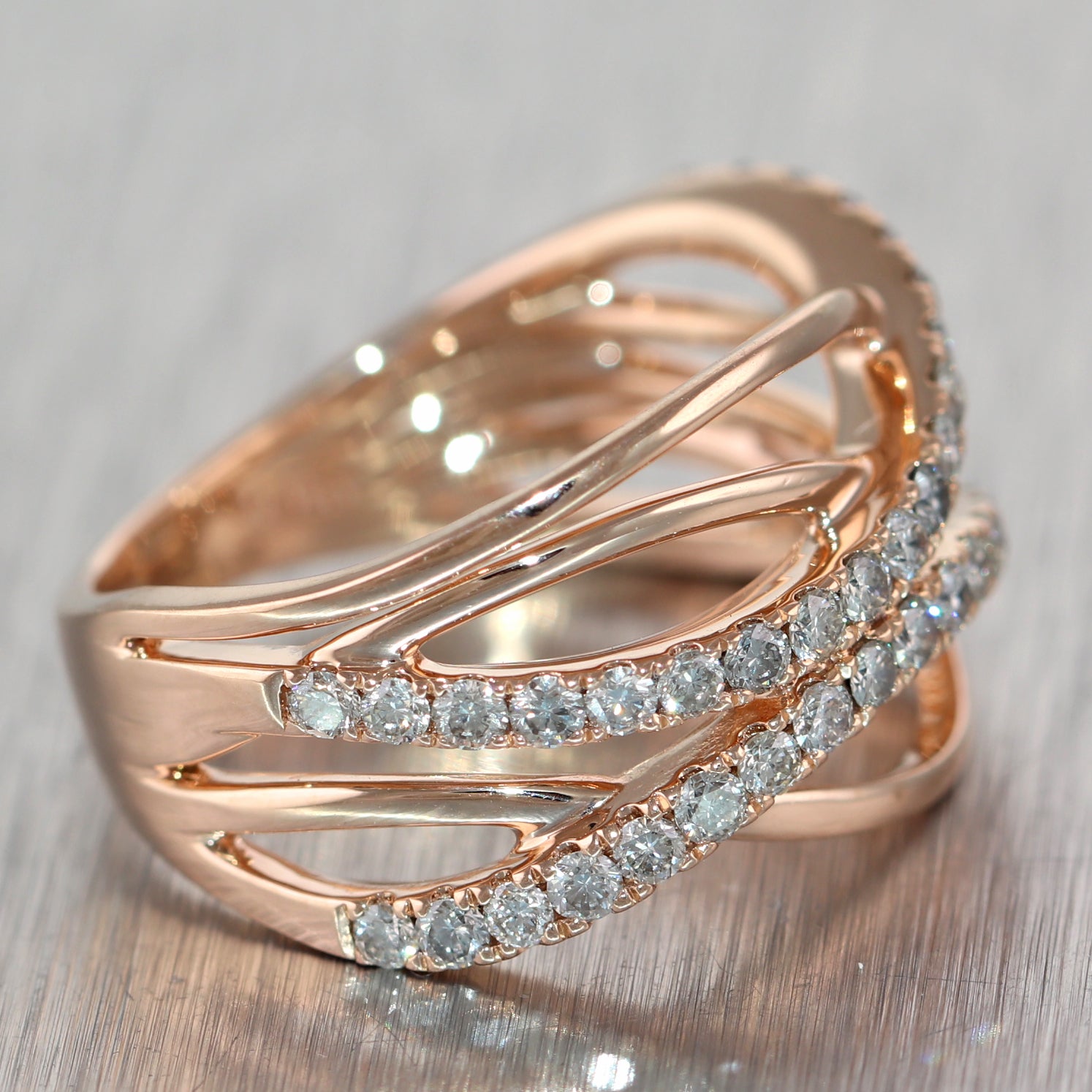 For your consideration, an authentic LeVian 14k Rose Gold 1ctw Diamond Wave Ring. It will come professionally packaged in a beautiful ring presentation box and our unconditional 30day money-back guarantee. J1