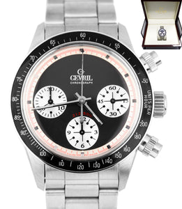 NEW Limited Gevril Tribeca Paul Newman Black Steel Chronograph 37mm Watch