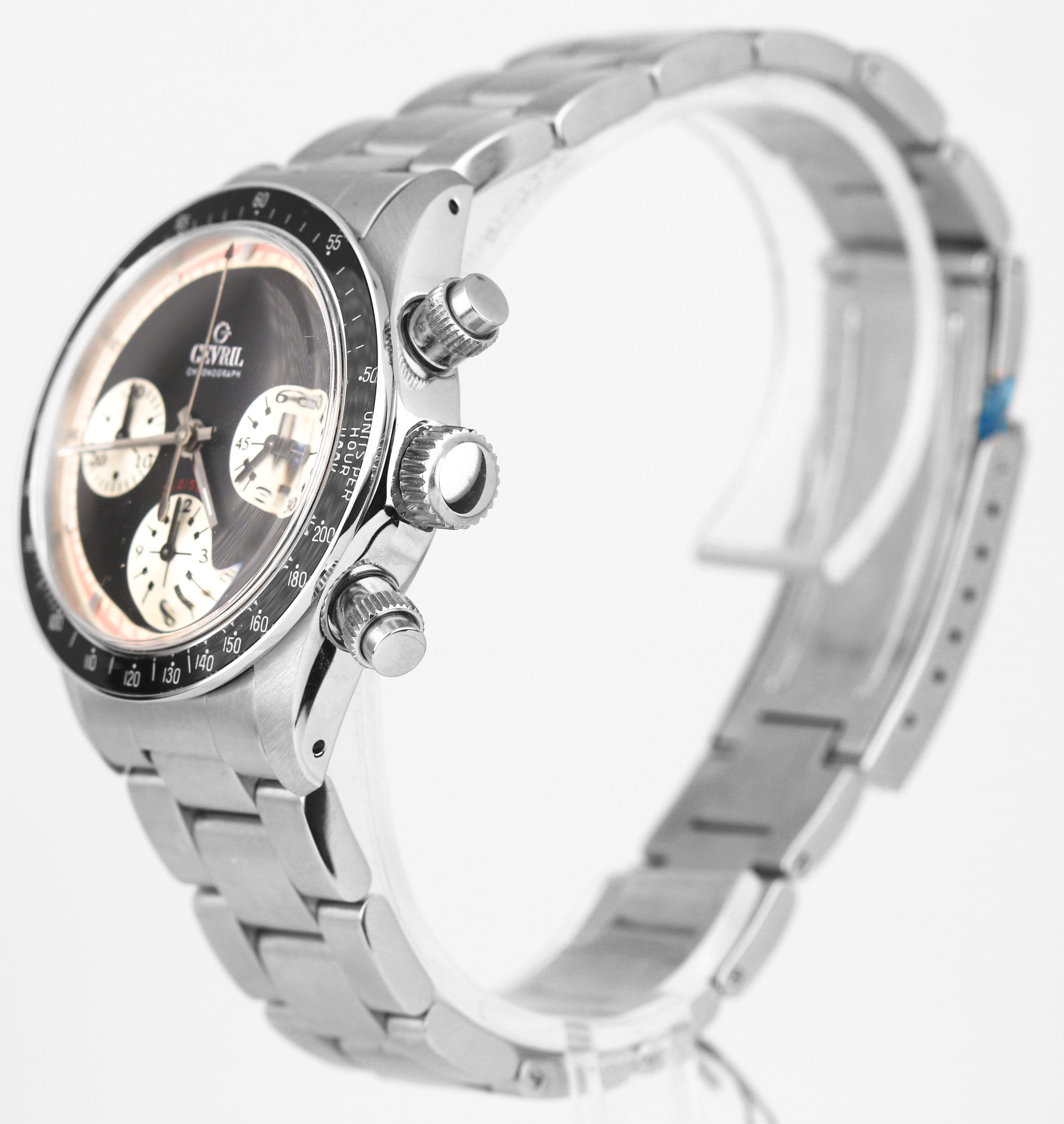 | Dial | Original Gevril 'Paul Newman' matte black chronograph dial |