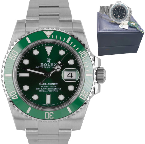 LNIB MINT 2019 Rolex Submariner Date Hulk 116610 LV Green Ceramic 40mm Watch