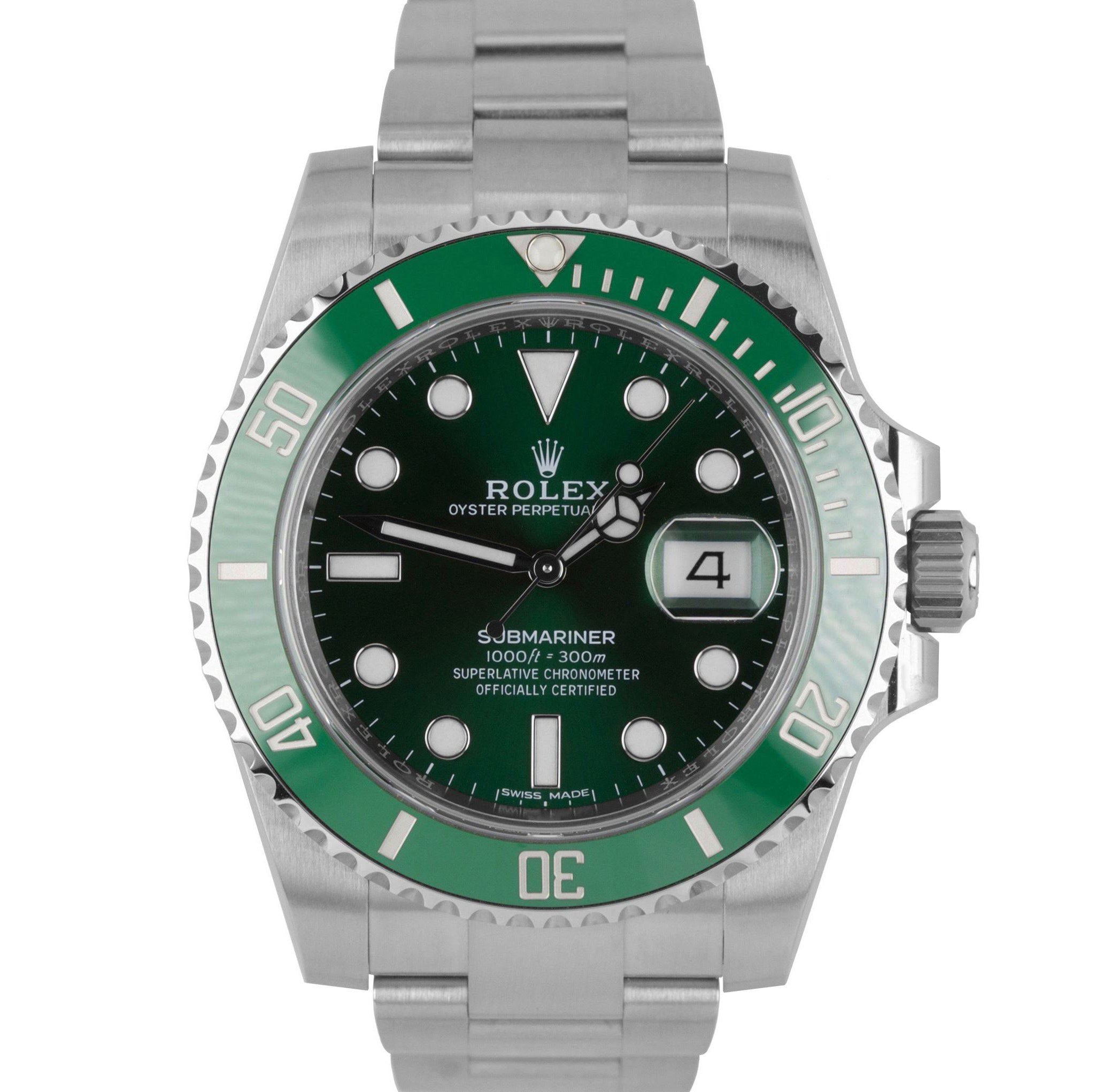 | Bezel | Original Rolex Unidirectional Rotatable 60-Minute Graduated Green Ceramic (Cerachrom) Stainless Steel Bezel |