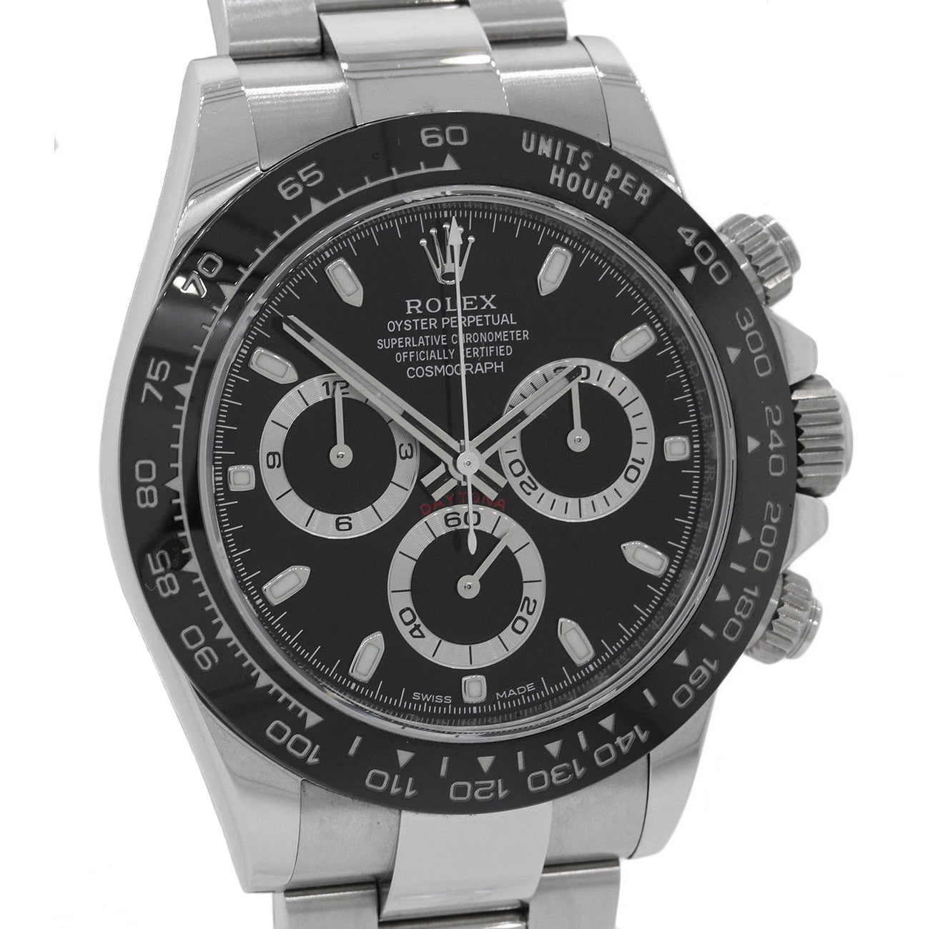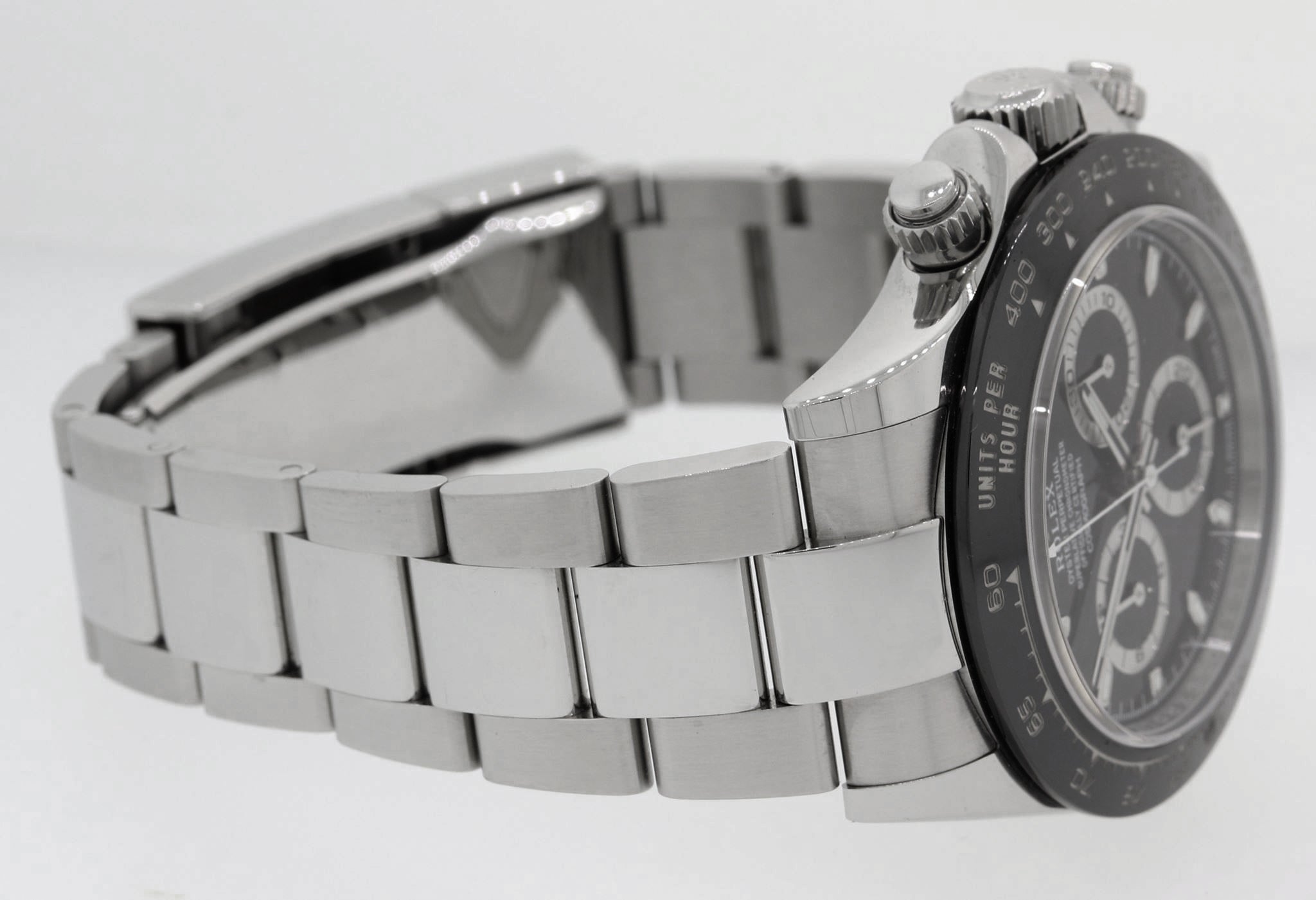 | Bezel | Original Rolex Black Ceramic Bezel with an engraved tachymetric scale |