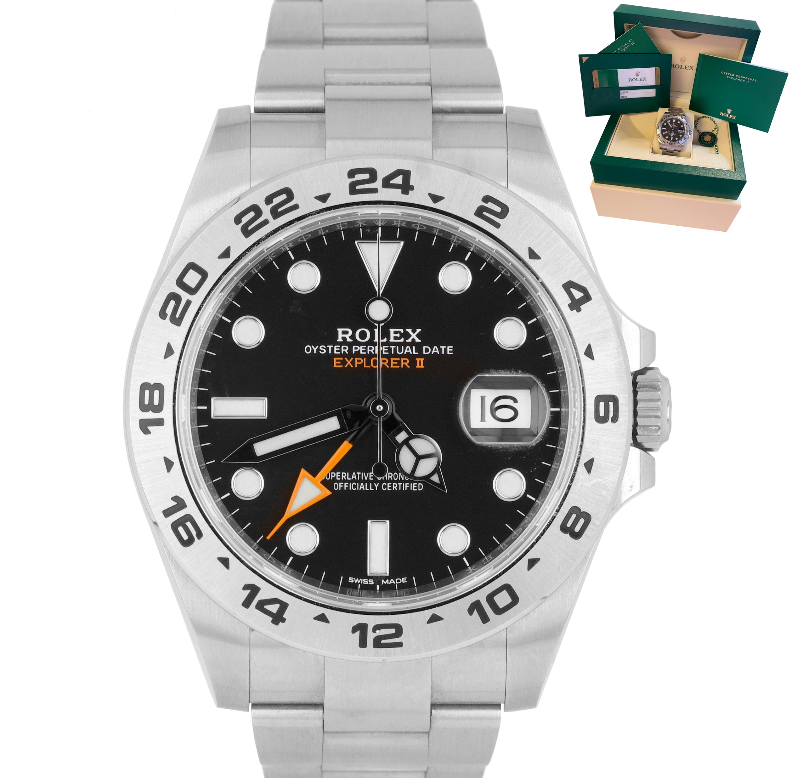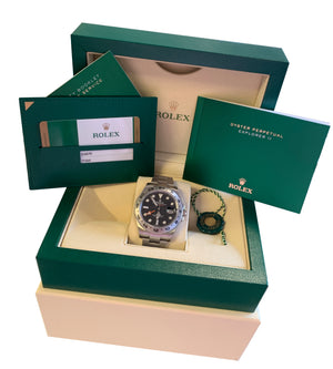 MAY 2019 LNIB Rolex Explorer II 42mm 216570 Black Orange Steel GMT Date Watch
