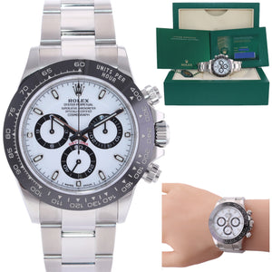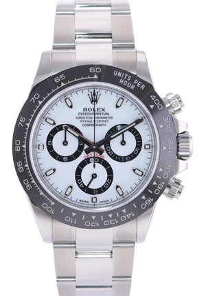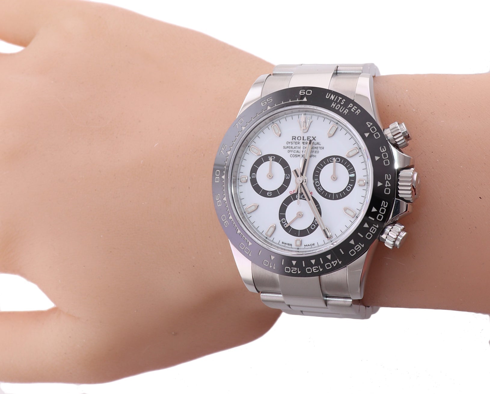 | Bezel | Rolex Fixed White Ceramic Bezel with an engraved tachymetric scale |