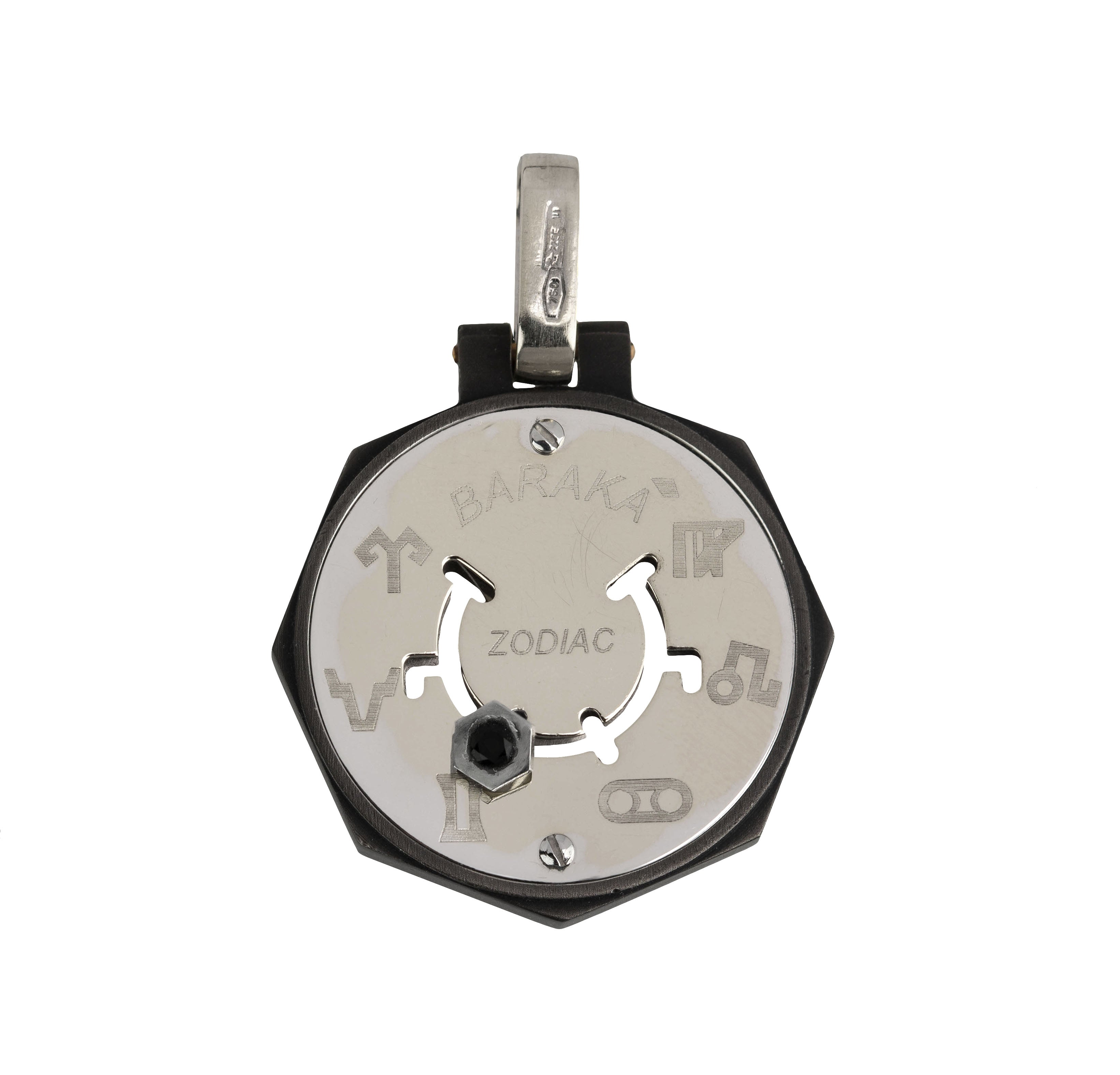 Men's Baraka 18k Gold High Tech Ceramic Zodiac Black Diamond Moveable Pendant