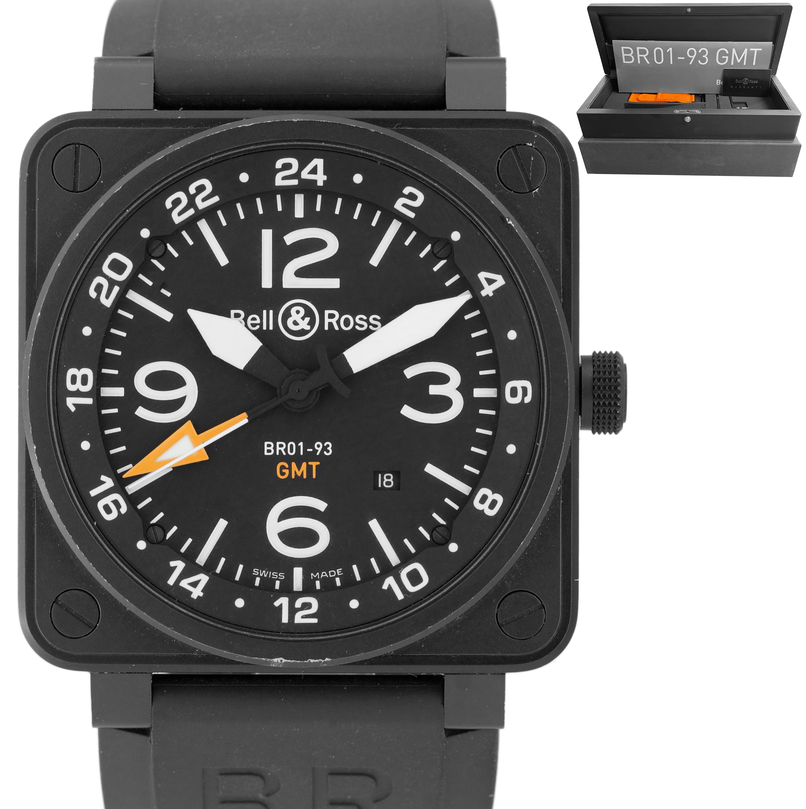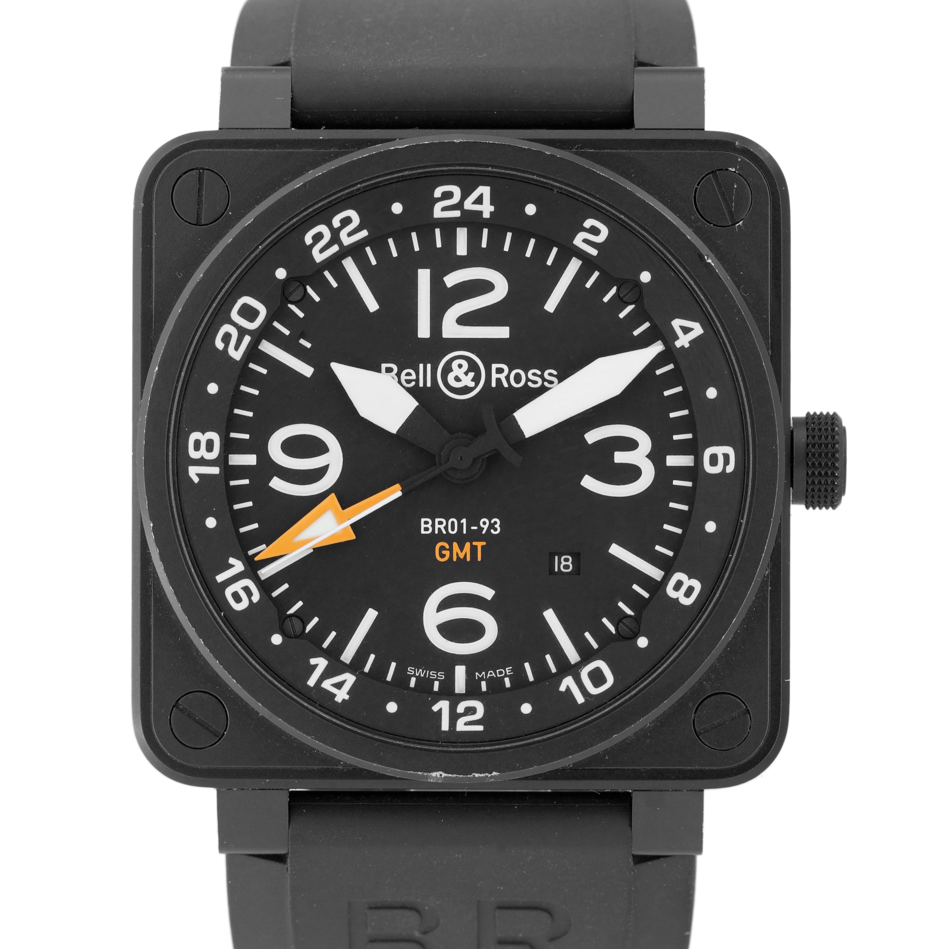 Men's Bell & Ross BR01-93 GMT Black PVD Stainless Steel Orange 46mm Square Watch