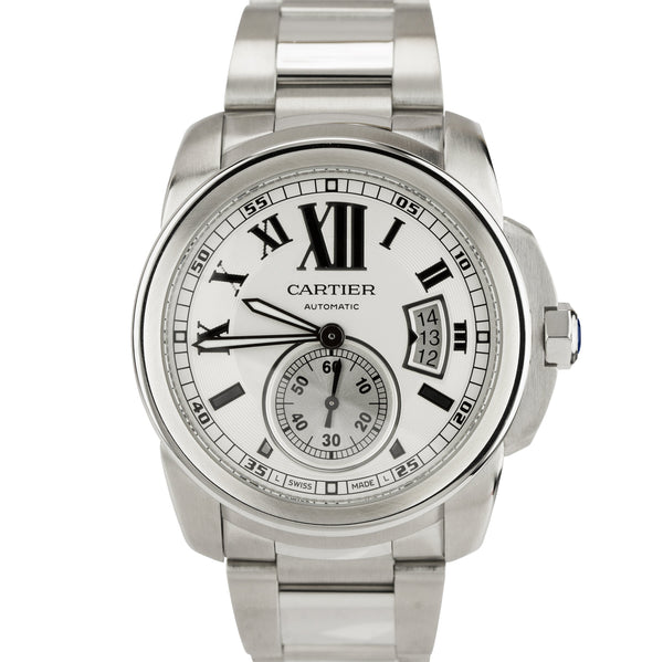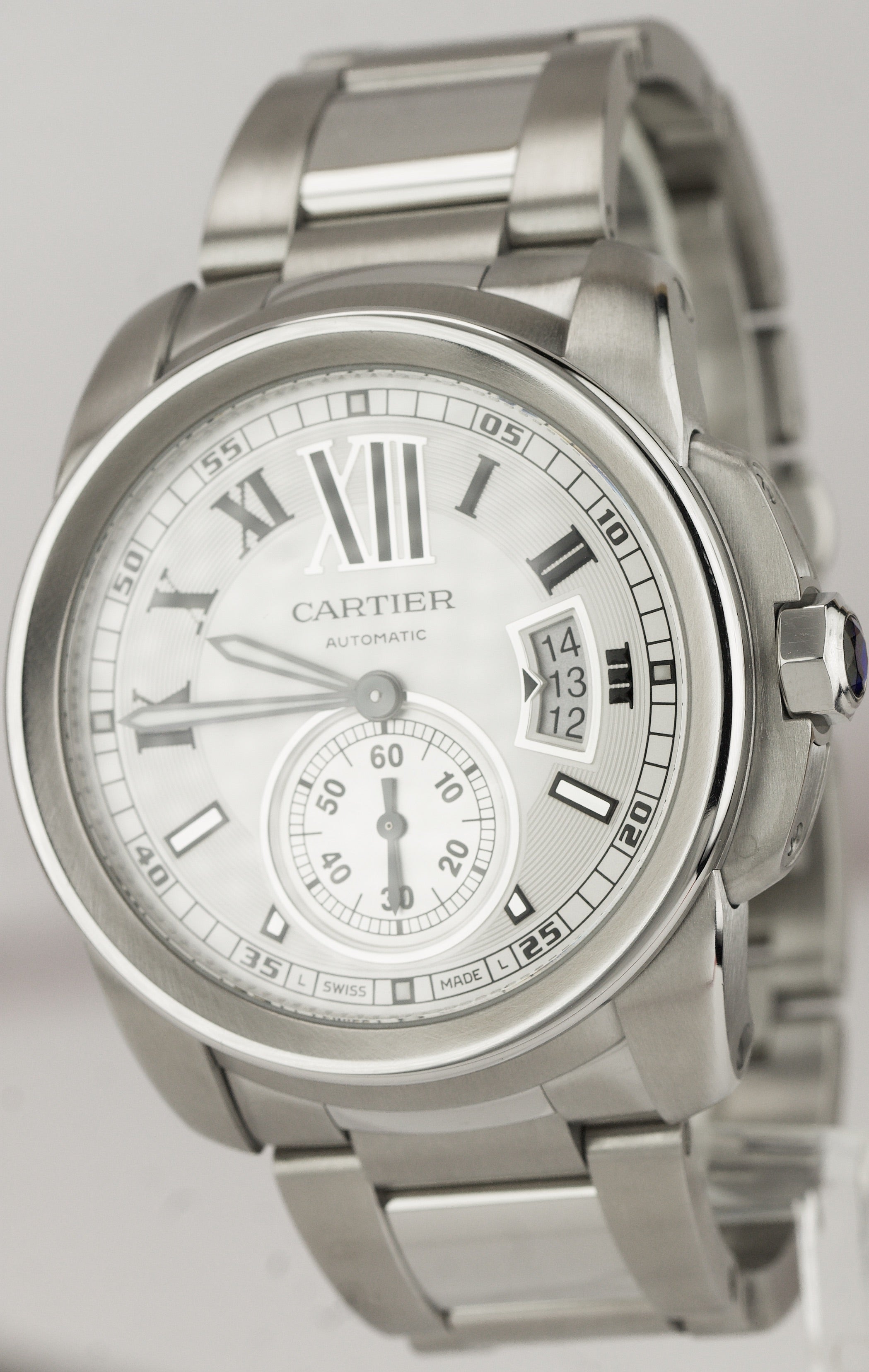 Men's Cartier Calibre White Roman 42mm Stainless Date Watch 3389 / W7100015