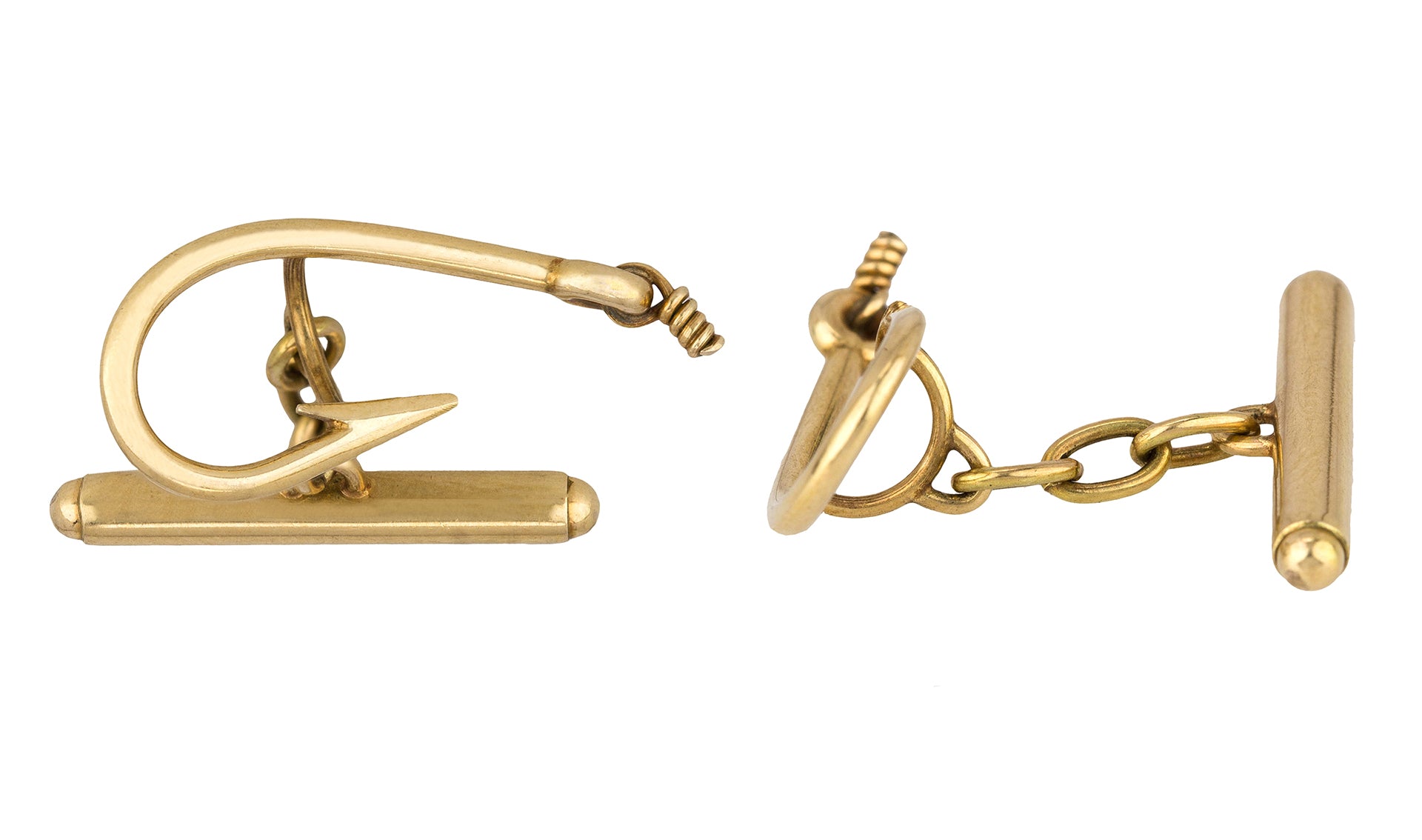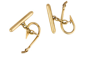 Men's Estate 14K Yellow Gold Fish Hook Cufflinks 6.9 Grams