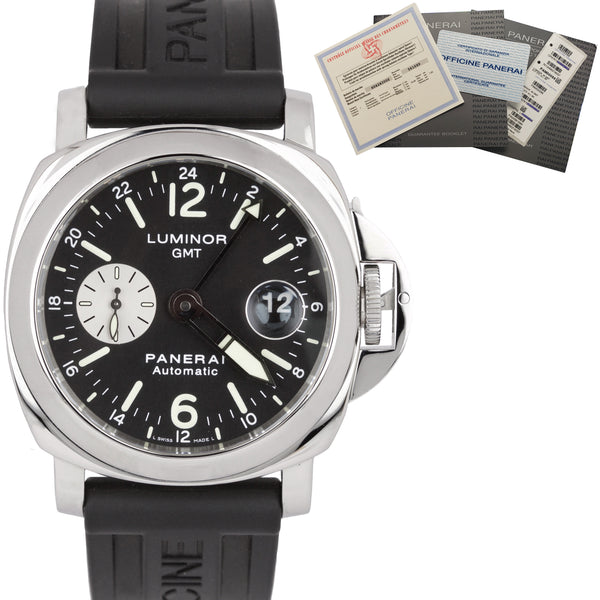 Men's MINT Panerai PAM 88 Luminor GMT Date Automatic Black 44mm Watch PAM00088
