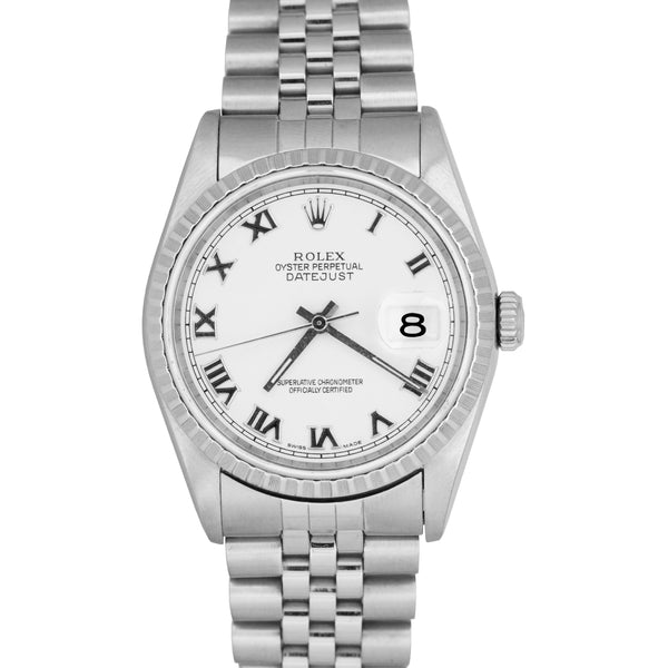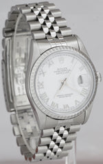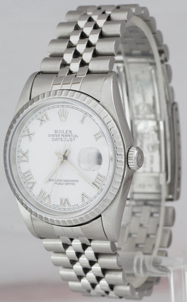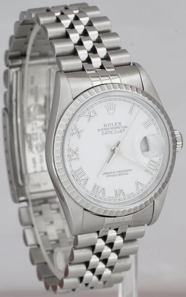 Men's Rolex DateJust 36mm White Roman Steel Jubilee NO-HOLES CASE Watch 16220