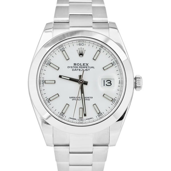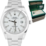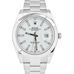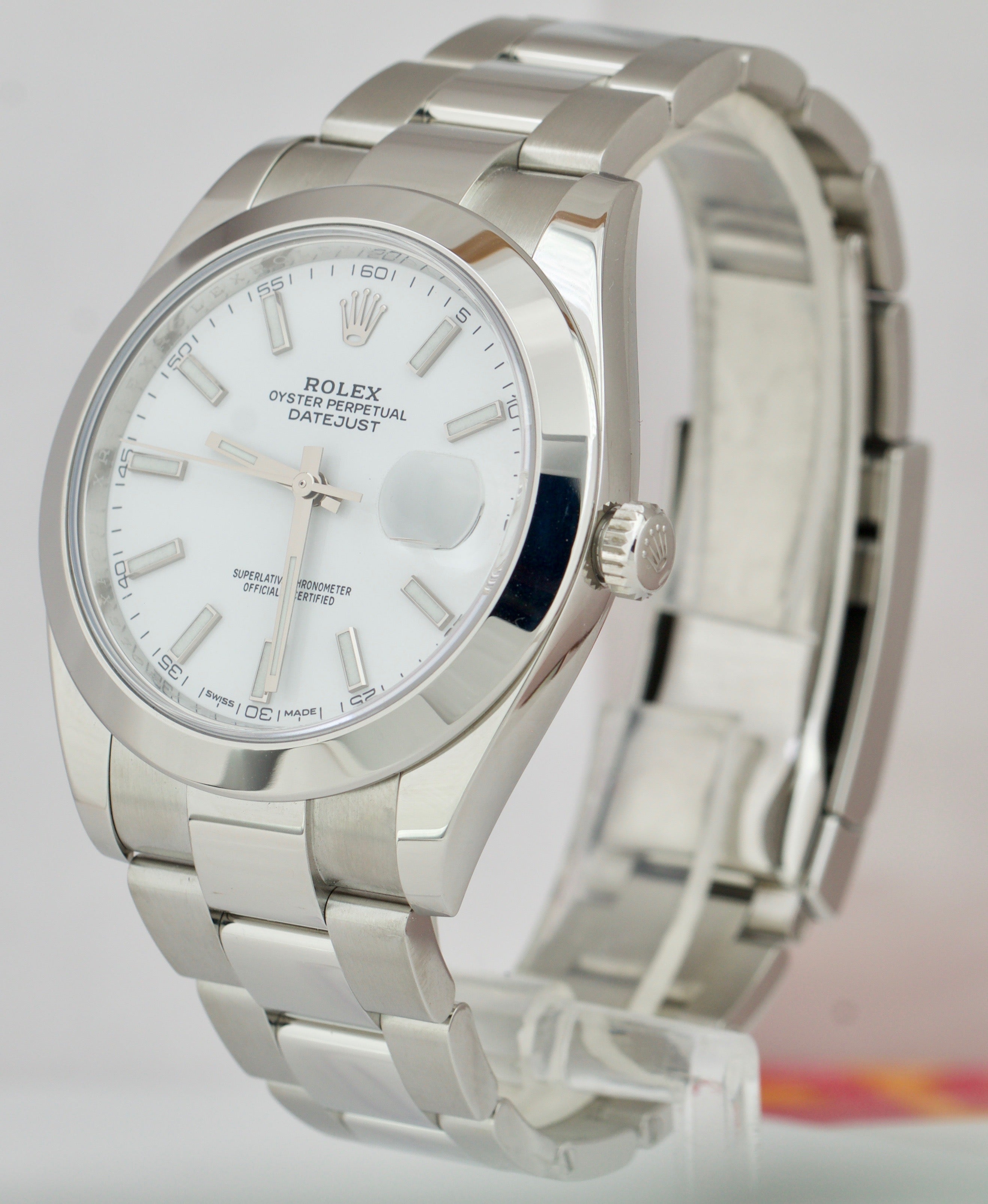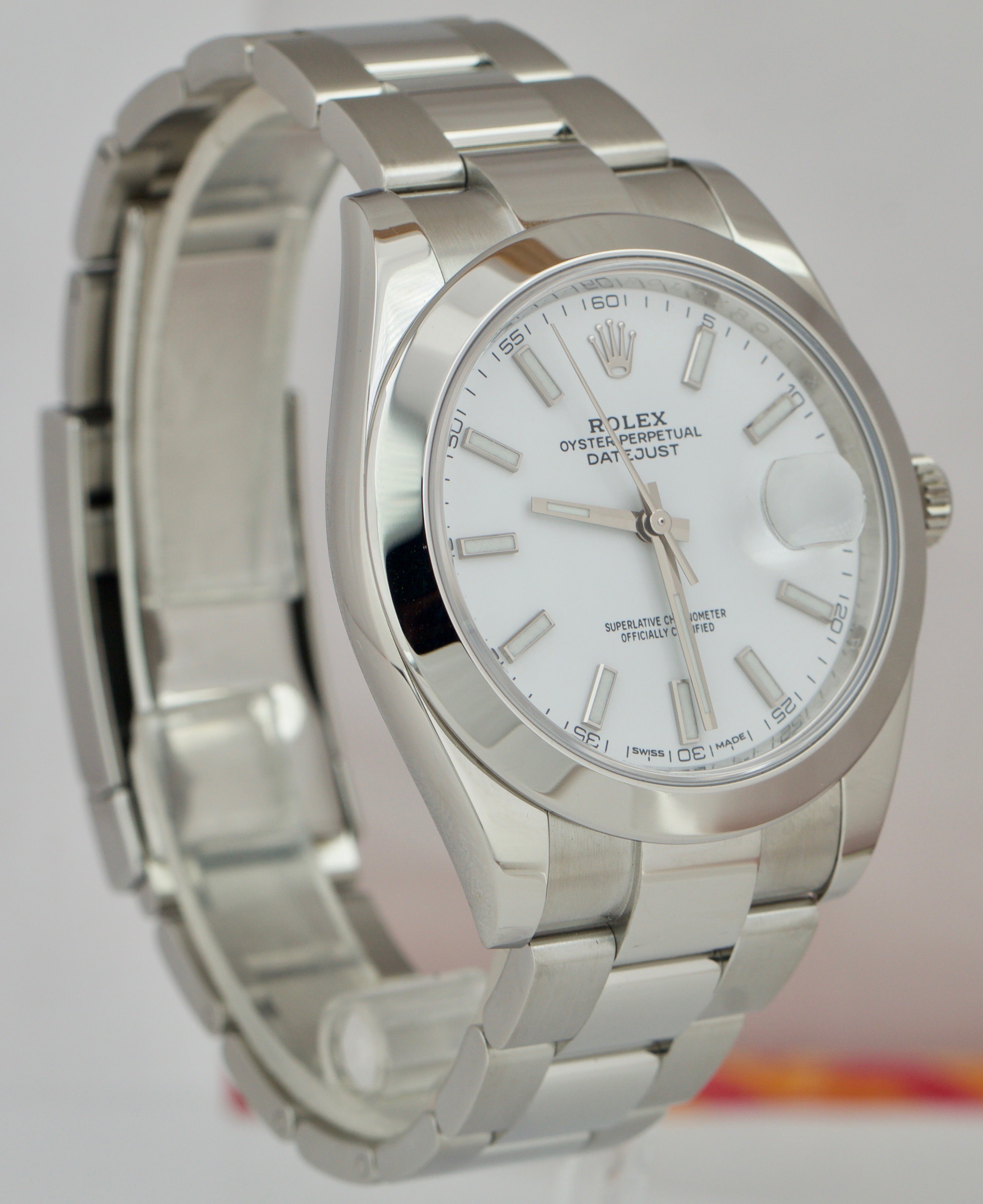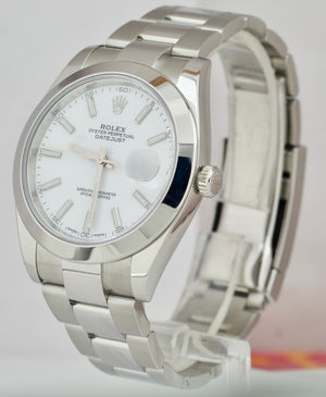 2019 Men's Rolex DateJust 41 White Stick 41mm Smooth Stainless Watch 126300 B+P