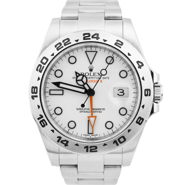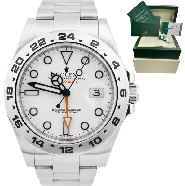 Rolex Explorer II 42mm Polar White Orange Stainless Steel GMT Date Watch 216570