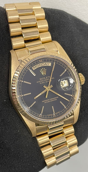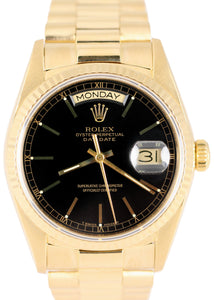 MINT Rolex Day-Date President 36mm Black 18K Yellow Gold Watch 18238